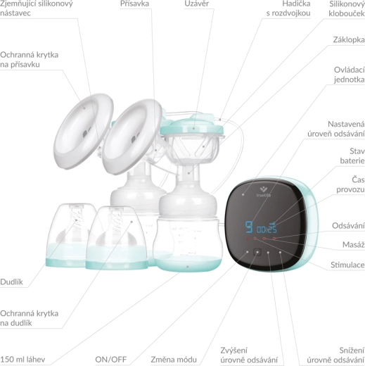 Upravljanje je jednostavno zahvaljujući LED zaslonu s dodirnim tipkama i praktičnom mjeraču vremena. Birajte između 3 režima – stimulacija, masaža i izdajanje – te 9 razina intenziteta za maksimalnu udobnost. Laka konstrukcija, kompaktne dimenzije i baterija s autonomijom do 150 minuta čine ovu izdajalicu idealnim pomagačem kod kuće i na putu. Nježni silikonski nastavci s fleksibilnim rubom i materijali bez BPA osiguravaju sigurnost za vas i vašu bebu.