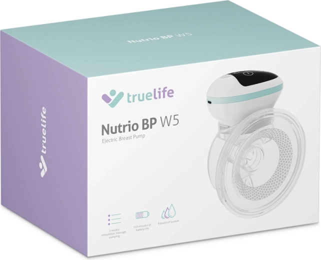 TrueLife Nutrio BP W5 moderna je električna handsfree izdajalica koja prirodno potiče laktaciju. Tri pametna režima – stimulacija za poticanje otjecanja mlijeka, nježna masaža za opuštanje i učinkovito izdajanje koje oponaša sisanje bebe – pružaju maksimalnu udobnost. Svaki režim lako prilagodite zahvaljujući devet razina intenziteta.