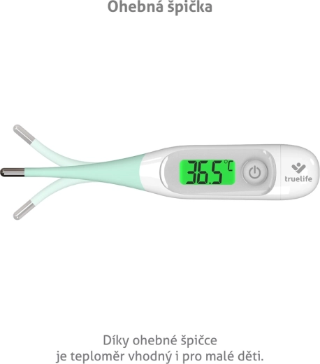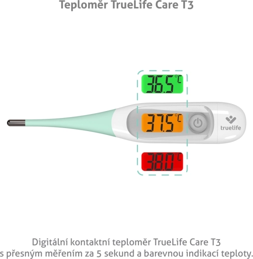 TrueLife Care T3 mjeri temperaturu za 5–10 s, ima trobojno pozadinsko osvjetljenje za brzo očitanje, savitljiv vrh i memoriju zadnjih 10 mjerenja. Mjeri i temperaturu kupke.