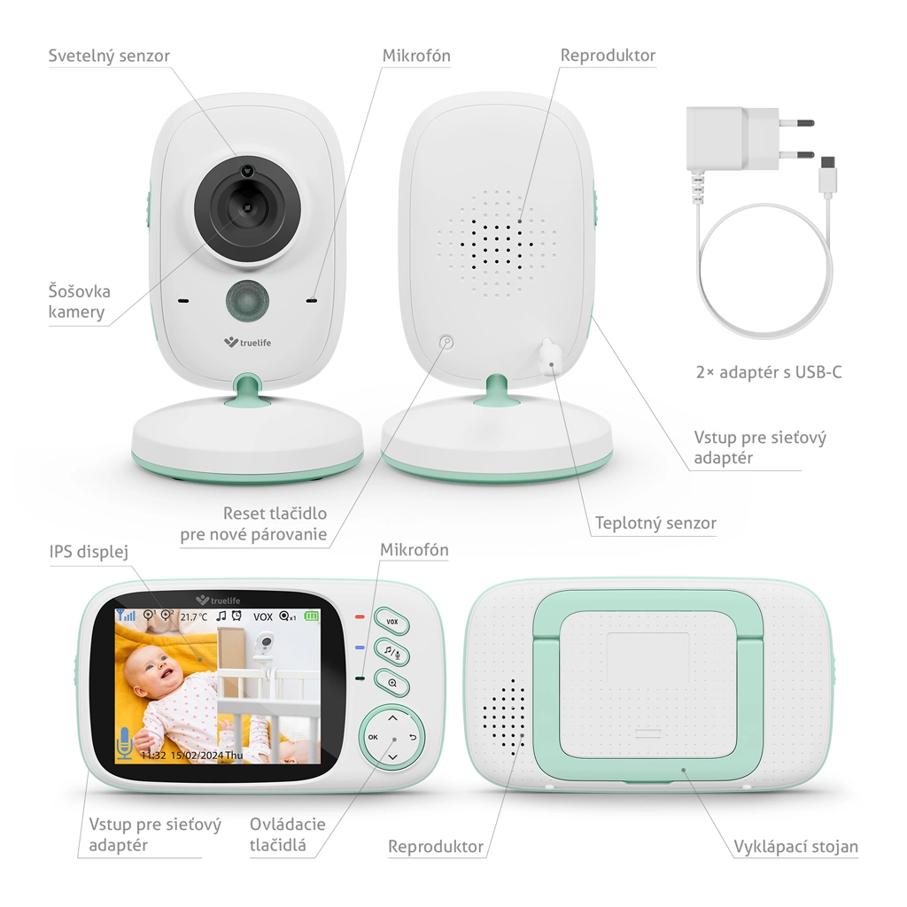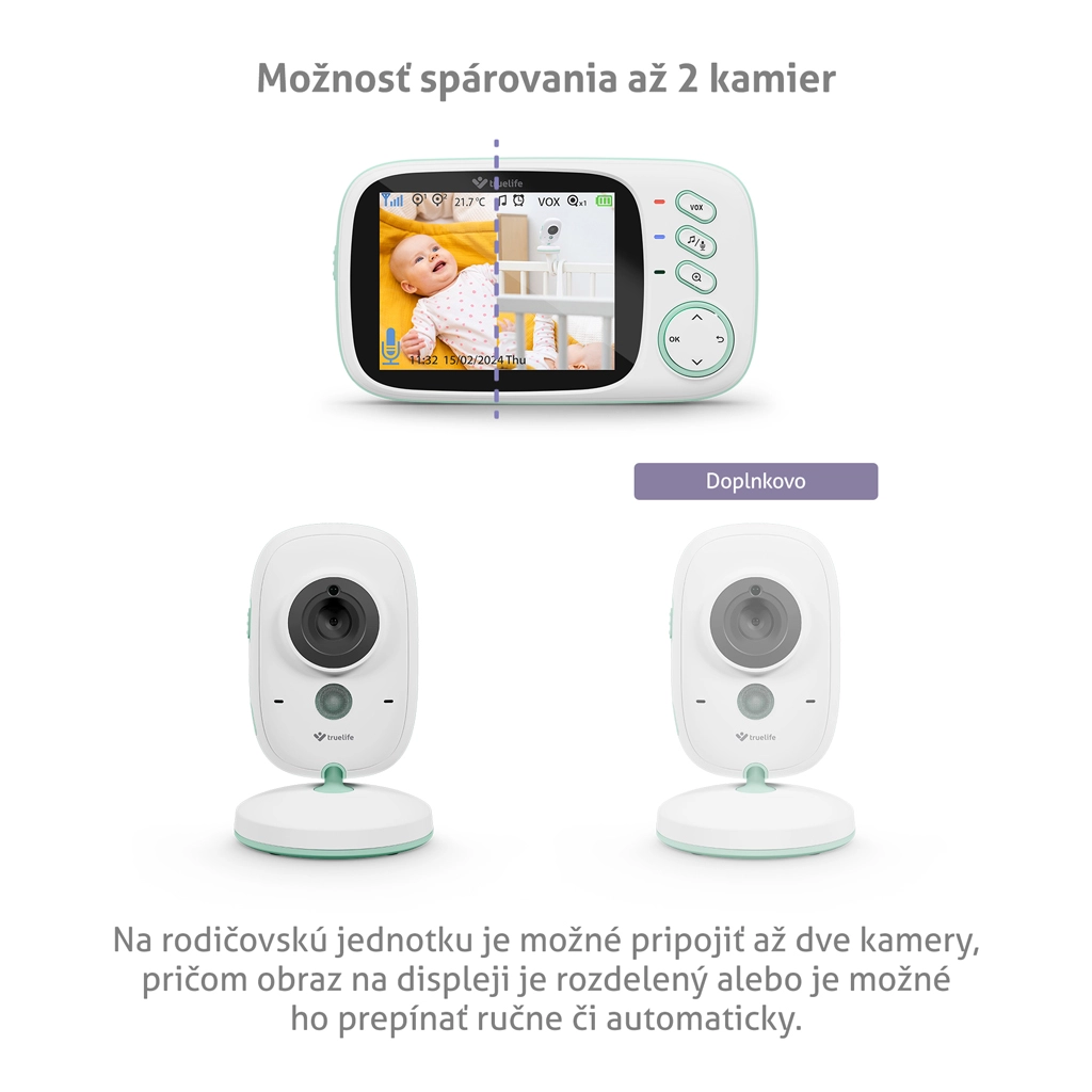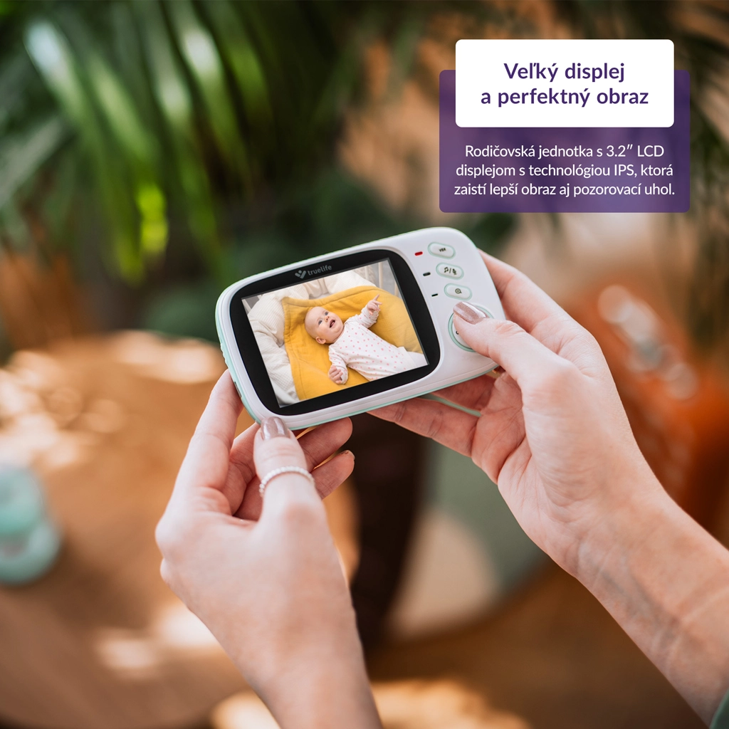 TrueLife NannyCam H32 Pro pouzdana je digitalna video dadilja koja vam omogućuje nadzor nad djetetom s kristalno čistom slikom na 3,2″ IPS zaslonu. Kada se smrači, aktivira se automatski noćni vid s dometom do 5 m. Zahvaljujući dvosmjernoj komunikaciji možete umiriti bebu vlastitim glasom ili pustiti jednu od 8 unaprijed postavljenih uspavanki.