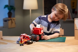 Crveno vatrogasno vozilo iz linije CITY SERVICE donosi realistčnu zabavu. Uz figuru vatrogasca i odvijač djeca lako sastavljaju model i kreću u intervenciju.