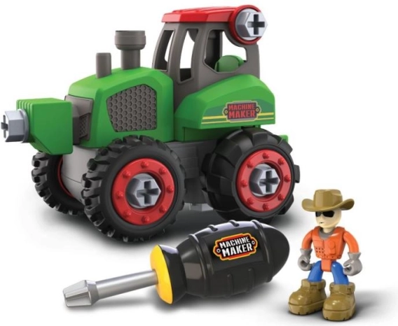Sastavi, odvrni i ponovno izgradi! Konstrukcijski set za zavrtanje MACHINE MAKER – Farma daje djeci priliku upoznati kako strojevi rade na polju. Zahvaljujući velikim plastičnim vijcima i priloženom odvijaču, montaža je jednostavna i zabavna, a pritom razvija strpljenje i koordinaciju oko–ruka.