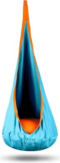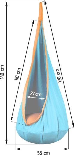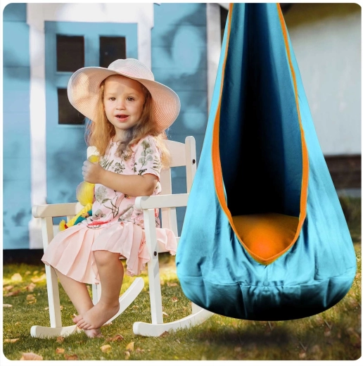 Ova dizajnerska dječja ljuljačka u obliku kokona pruža mirnu, sigurnu i ugodno zatvorenu zonu za odmor i igru. Zahvaljujući dubokom sjedištu s mekim jastukom, djeca mogu udobno sjediti, čitati i nježno se ljuljati. Čvrste viseće ušice i kvalitetno prošivanje osiguravaju dugotrajnost i sigurnu upotrebu u zatvorenom i na otvorenom.