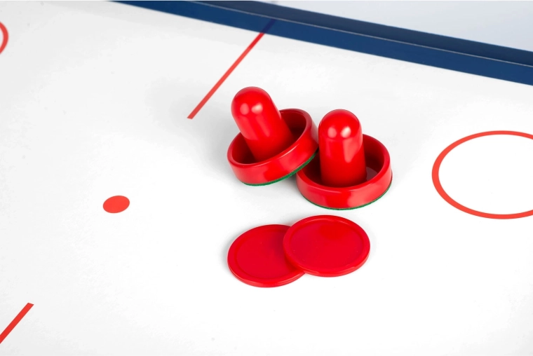 Svaka varijanta igre dolazi s kompletnom opremom – od štapova, kugli i trokuta preko reketa i loptica do odbijača i pakova. Ne nedostaju ni pregledna brojila rezultata za brzu kontrolu ishoda. Zahvaljujući kompaktnih dimenzijama, stol je prikladan za dnevni boravak, dječju sobu i ured, a jednostavna montaža osigurava brz početak zabave.