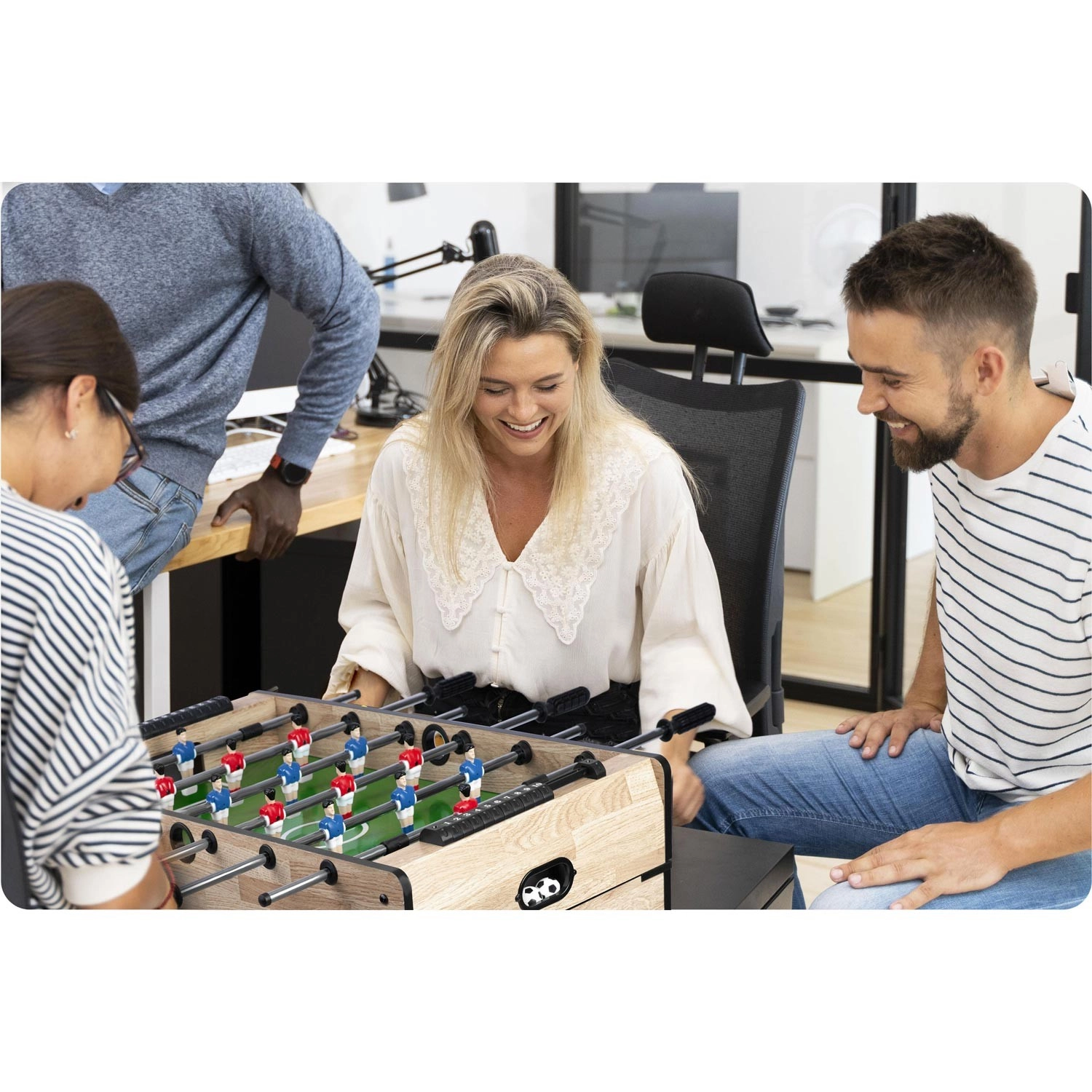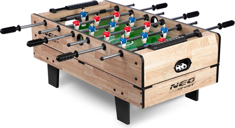 Multifunkcionalni igraći stol 4u1 NEO-SPORT spaja četiri omiljene igre u jedno kompaktno rješenje. Zahvaljujući pametnim, lako izmjenjivim igraćim površinama prebacit ćete se u trenu između stolnog nogometa, air hokeja, ping ponga i biljara. Drvena konstrukcija s čvrstim nogama osigurava stabilnost i dugi vijek trajanja čak i pri intenzivnoj igri.