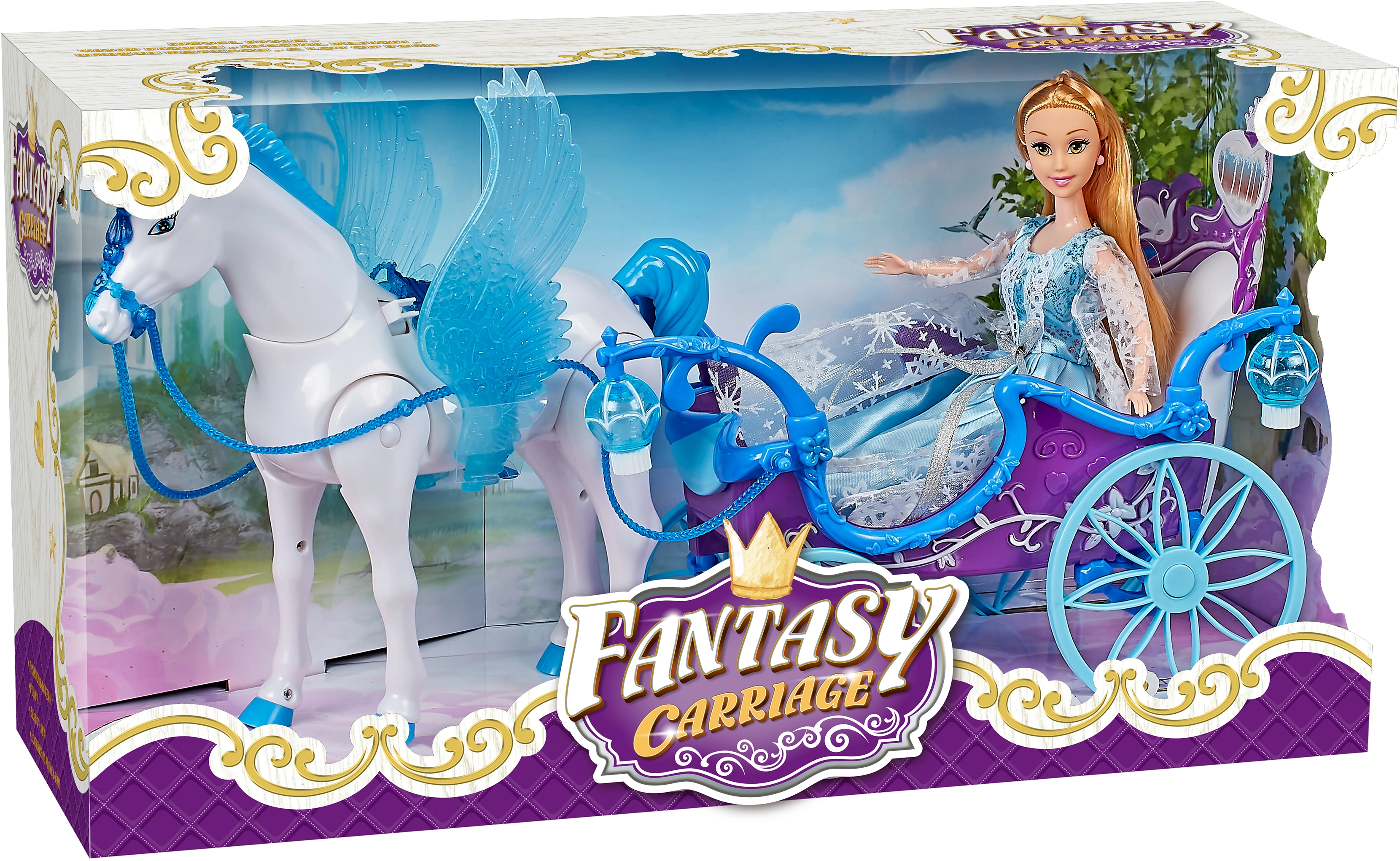 Otkrijte čarobni svijet s magijskom plavom kočijom, Pegazom i lutkom, koji nude svjetlosne i zvučne efekte, bajkovit dizajn i jednostavno upravljanje za beskrajne trenutke maštovite igre.