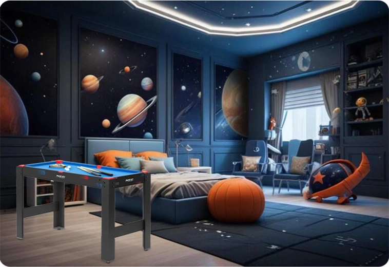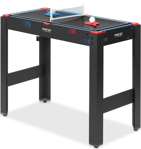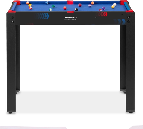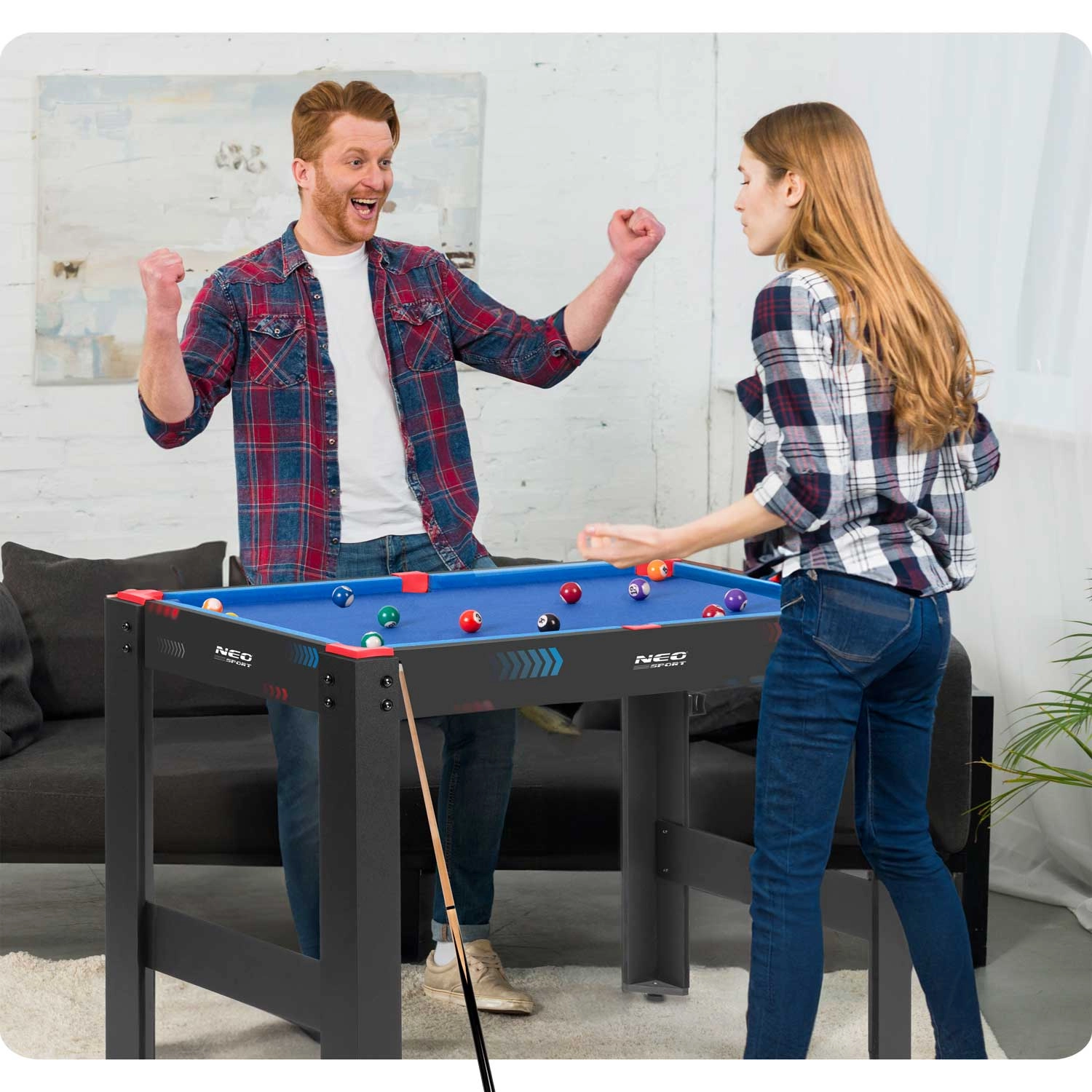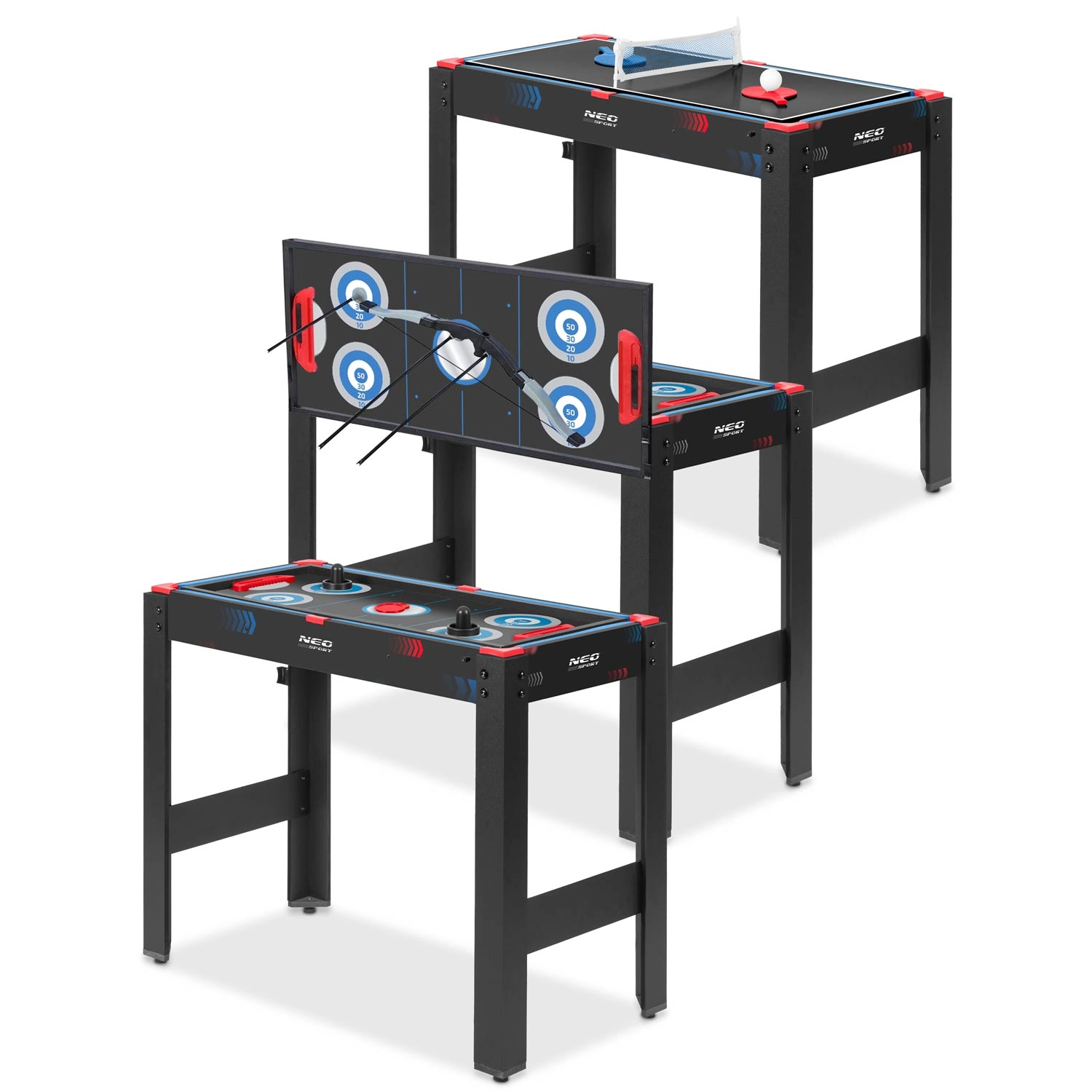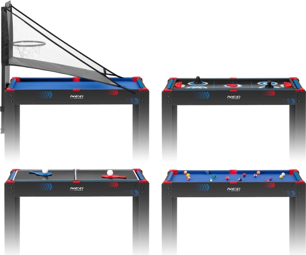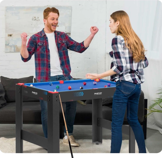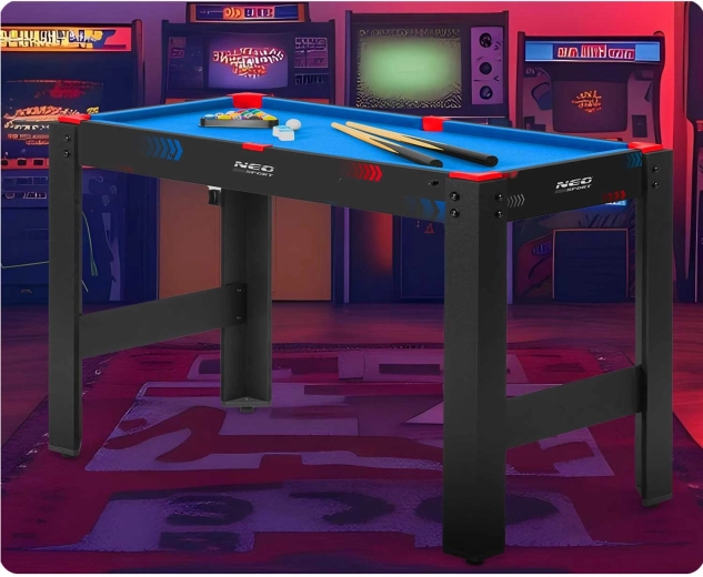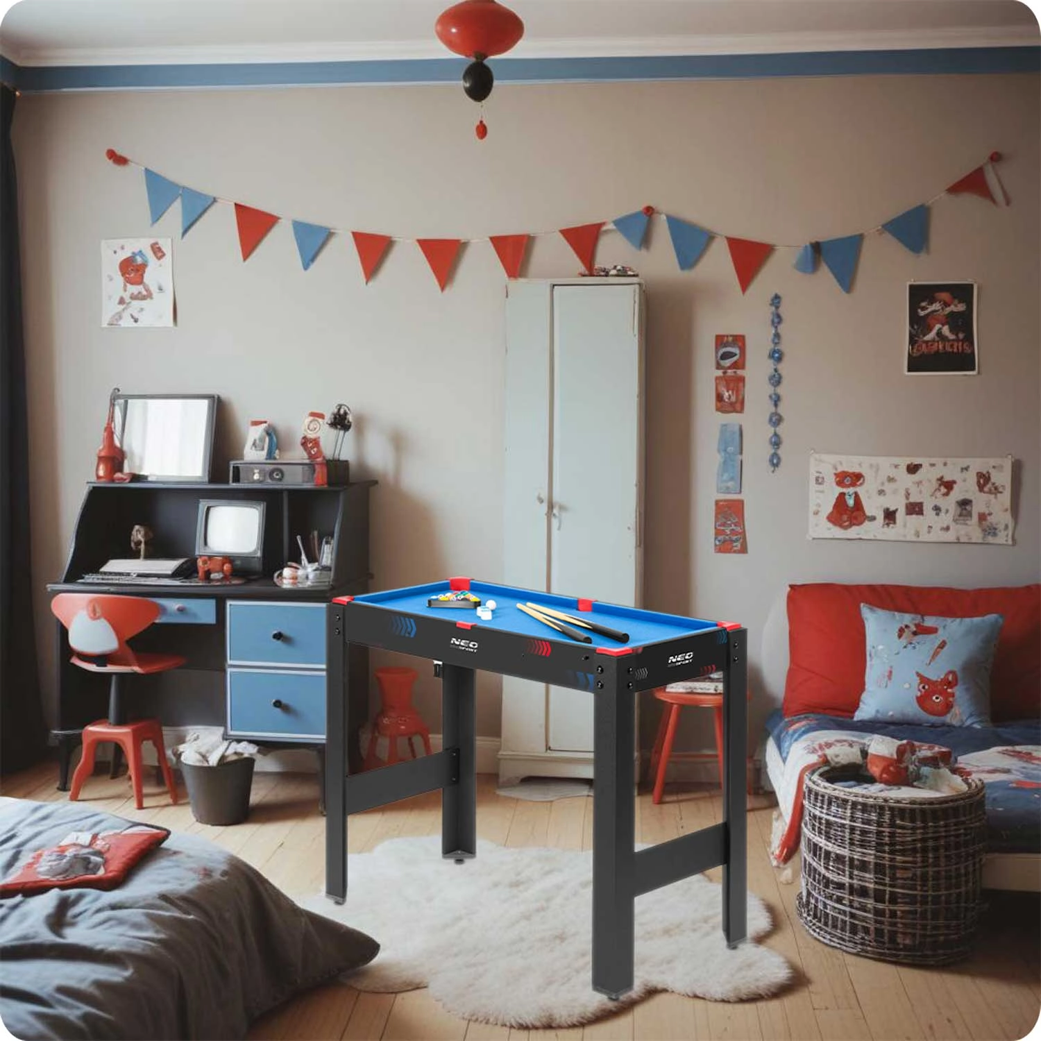 Igraći stol 5u1 NEO SPORT idealno je rješenje za dječju sobu, igraonicu i dnevni boravak. Zahvaljujući čvrstoj osnovi i promišljenim zamjenjivim pločama, u trenu prelazite između omiljenih igara. Kompaktne dimenzije štede prostor – baza s nogama, obostrana ploča i bilijarski stol slažu se u jednu cjelinu.