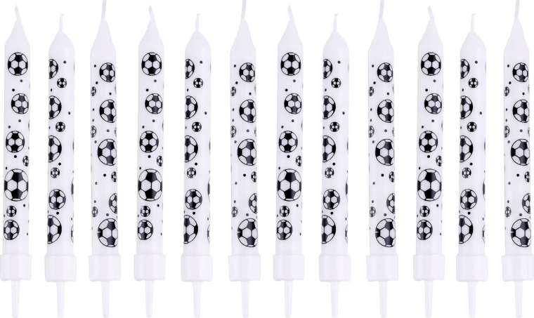 Ove elegantne svjećice za torte s nogometnim motivom dat će vašoj proslavi pravi sportski štih. Zahvaljujući priloženim držačima, njihovo postavljanje na tortu ili kolače je brzo, stabilno i sigurno. Visina od 8 cm osigurava dobru vidljivost i efektan izgled na svakoj rođendanskoj proslavi.
