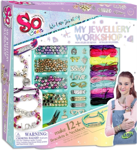 S ovim raznobojnim setom za izradu nakita brenda Tasia djeca će lako pretvoriti svoje ideje u originalne dodatke. Raznolike perlice u mnogim bojama, oblicima i veličinama omogućuju stvaranje jedinstvenih kombinacija. Praktična kliješta olakšavaju rad s komponentama i osiguravaju precizno učvršćivanje.