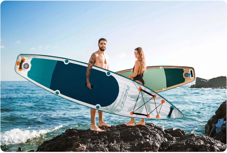 Višeslojni PVC s drop-stitch jezgrom osigurava visoku krutost, izdržljivost i dug vijek trajanja, a pritom zadržava nisku masu za lako prenošenje.