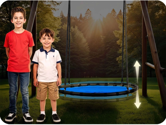Ljuljačka je opremljena glatkom regulacijom visine do 160 cm, pa je lako prilagodite visini i dobi djeteta – raste zajedno s njim. Zahvaljujući velikom promjeru od 120 cm, na njoj se može udobno ljuljati jedno ili više djece, a možete uživati u relaksaciji i vi – nosivost je do 150 kg.