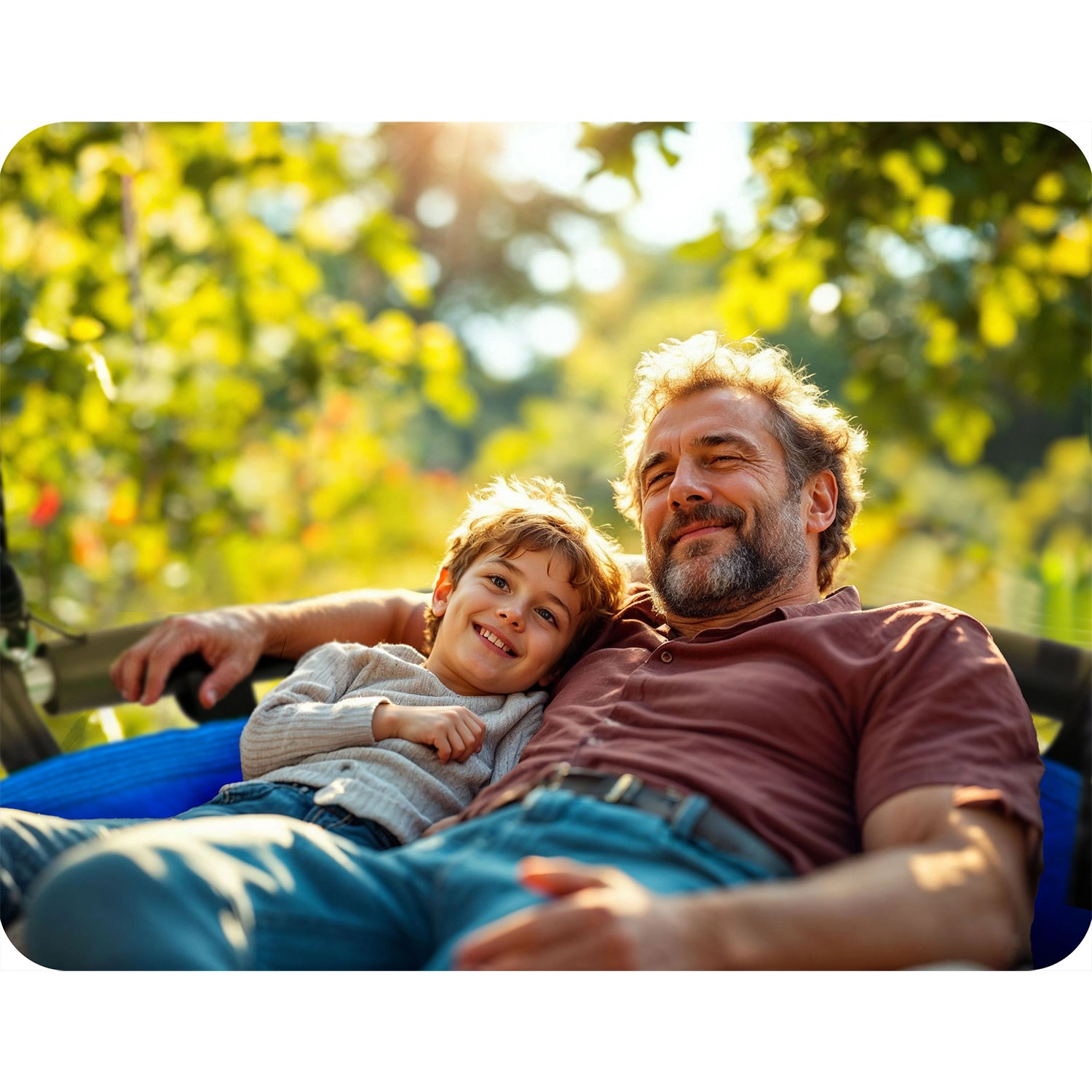Stabilna čelična konstrukcija s pjenastim podlogama povećava sigurnost i udobnost. Elastičan rub štiti od udaraca i povećava komfor pri ljuljanju.