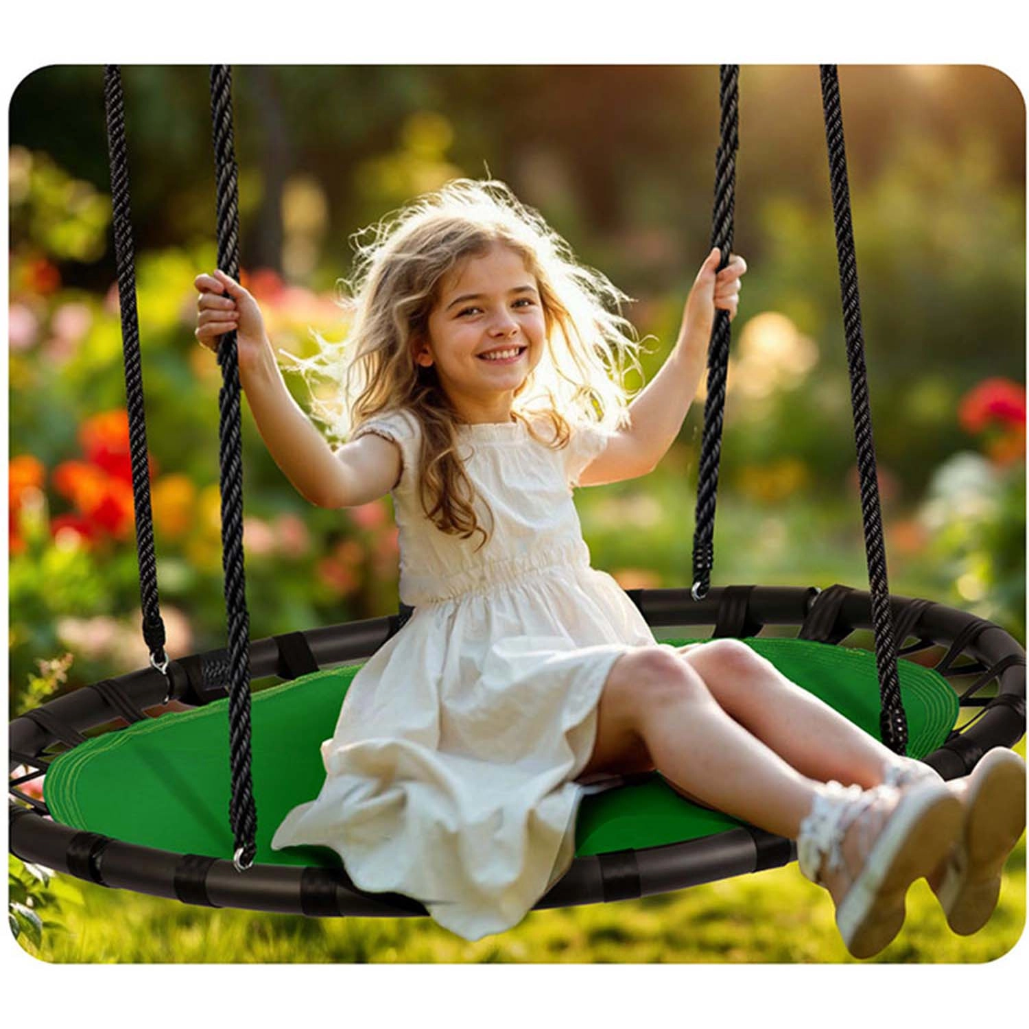 Zahvaljujući podesivim užadima lako ćete prilagoditi visinu prema dobi i visini djeteta. Čvrste policesterske špage održavaju stabilnost i osiguravaju glatko, ujednačeno kretanje. Ugradnja je brza, a održavanje minimalno – idealan odabir za dugotrajnu i sigurnu upotrebu na svježem zraku.