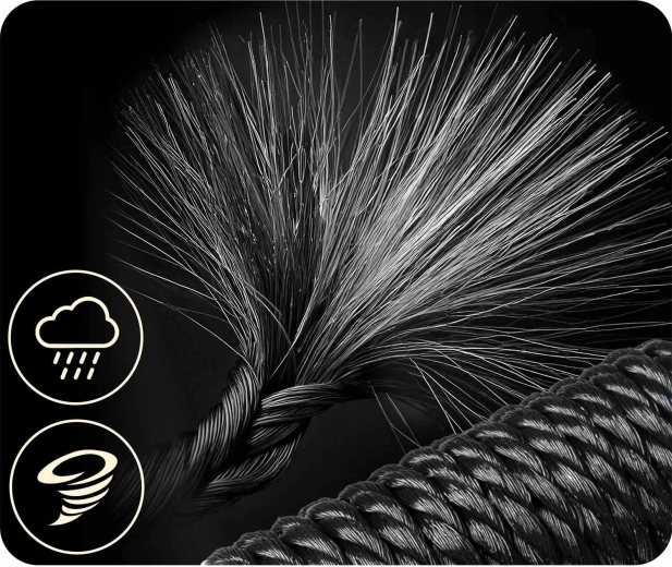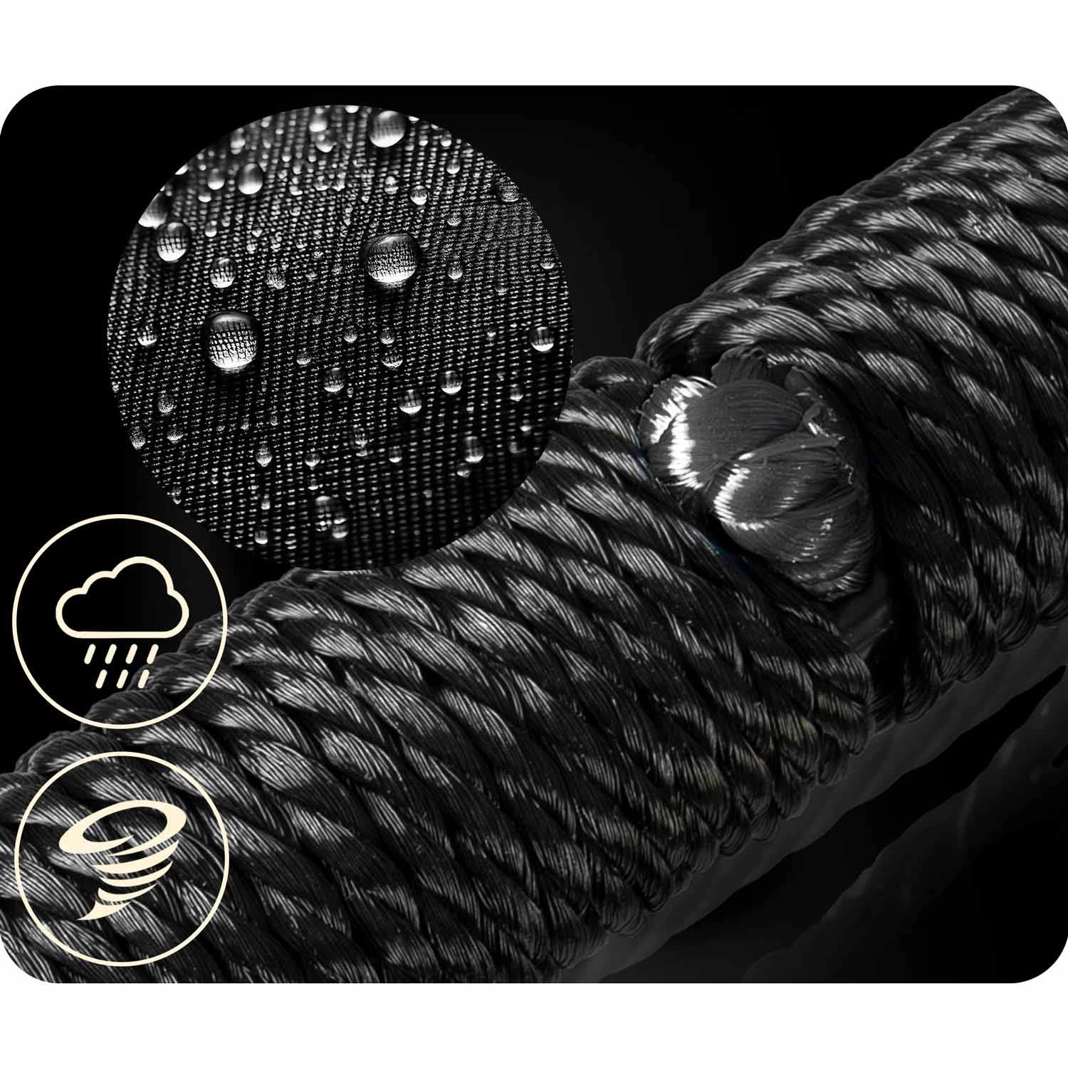 Debljina i kvaliteta PE užadi osiguravaju otpornost na abraziju, vlagu i sunce. Ljuljačka se lako čisti i spremna je za svakodnevnu upotrebu na otvorenom.