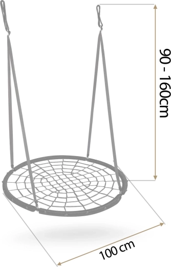 Ljuljačka NEO-SPORT promjera 100 cm izvrstan je izbor za vrt, terasu i igralište. Robusna čelična okvirna konstrukcija presvučena izdržljivim PE-om i snažno pleteno uže u stilu paukove mreže pružaju udobno i sigurno sjedenje. Materijali odolijevaju vremenskim uvjetima, lako se održavaju i spremni su za svakodnevnu zabavu.