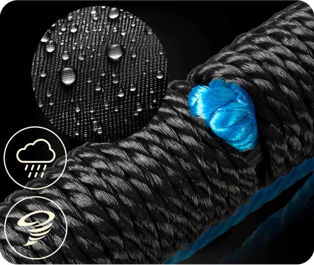 Snažna PE užad vodootporna su, otporna na abraziju i UV zračenje. Lako se čiste i jamče sigurno i udobno ljuljanje dugi niz godina.