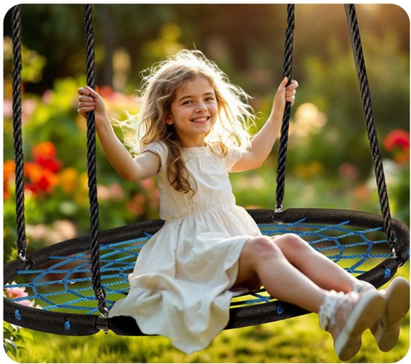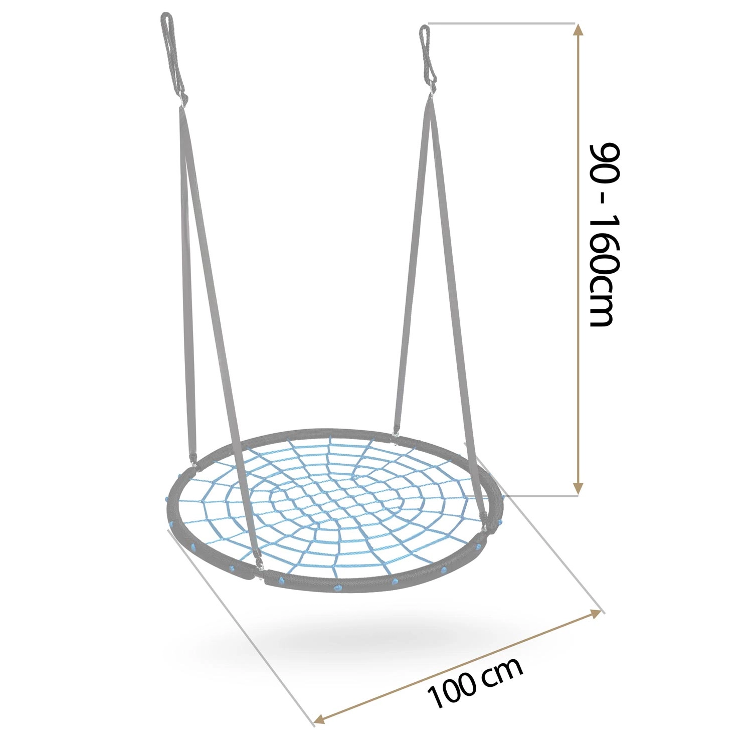 Gnijezdo-ljulja NEO-SPORT promjera 100 cm pretvorit će vaše dvorište u sigurno mjesto za opuštanje i aktivnu igru. Robustan čelični okvir s PE omotačem i gusto pleteno sjedišno uže jamče stabilnost, dugotrajnost i udobno sjedenje. Zahvaljujući otpornosti na UV zračenje i abraziju, ljuljačka će zadržati izgled i funkcionalnost kroz mnoge sezone.