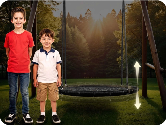 Jednostavna regulacija ovjesa u rasponu oko 90–160 cm omogućuje prilagodbu ljuljačke dobi djeteta i prostoru.