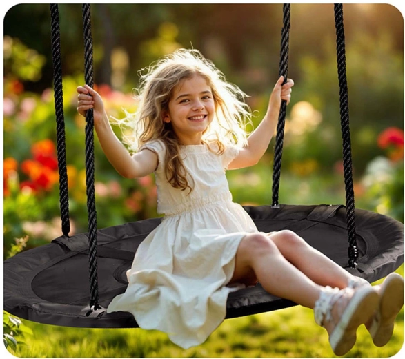 Okrugla ljuljačka NEO-SPORT promjera 110 cm idealan je izbor za obitelji koje žele spojiti aktivan odmor i sigurnu zabavu. Robustan čelični okvir s mekanom PE pjenastom oblogom i višestrukim prošivima pruža stabilnost i dugotrajnost, dok je sjedište od izdržljivog poliestera Oxford 600D vodootporno i lako se čisti.