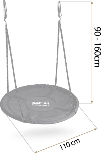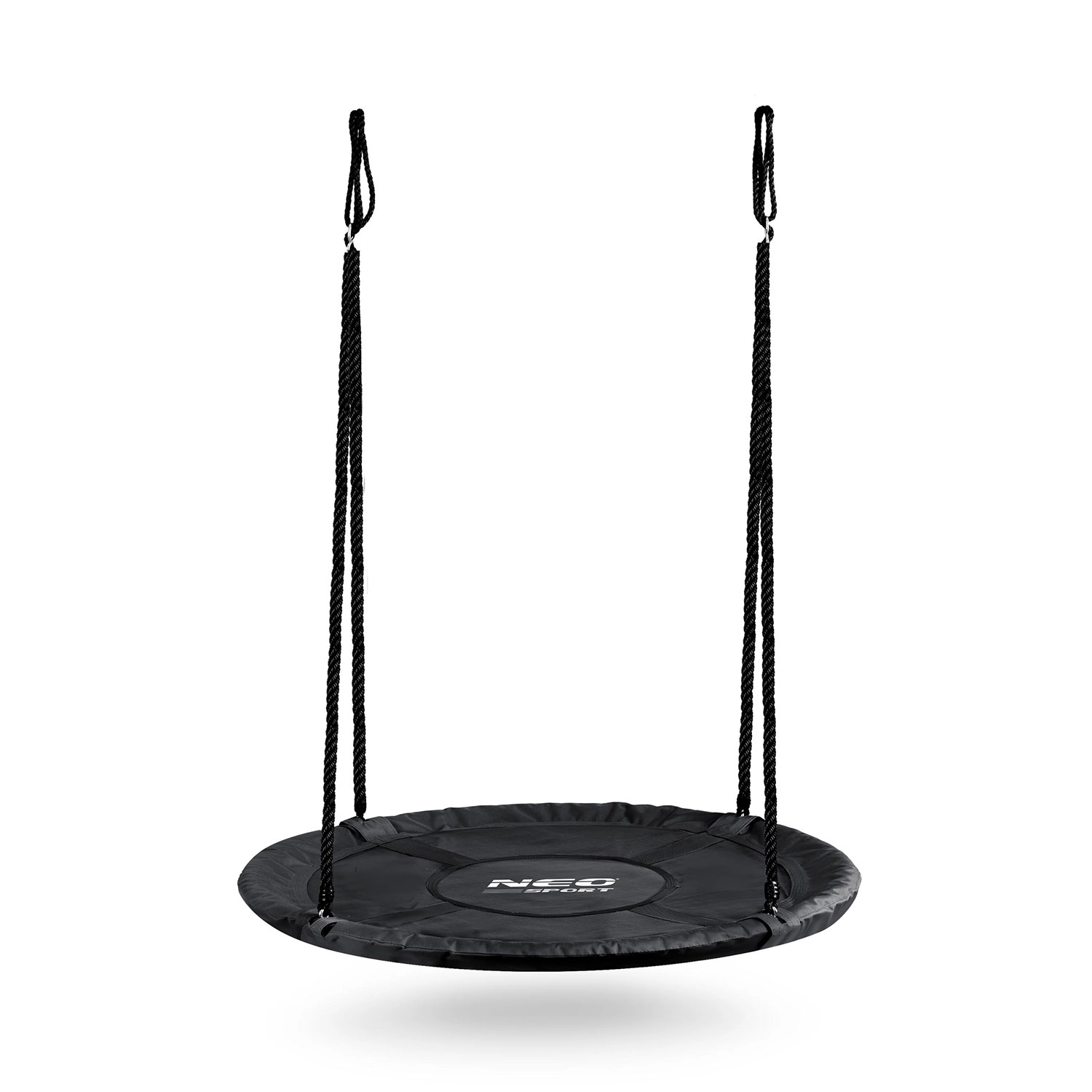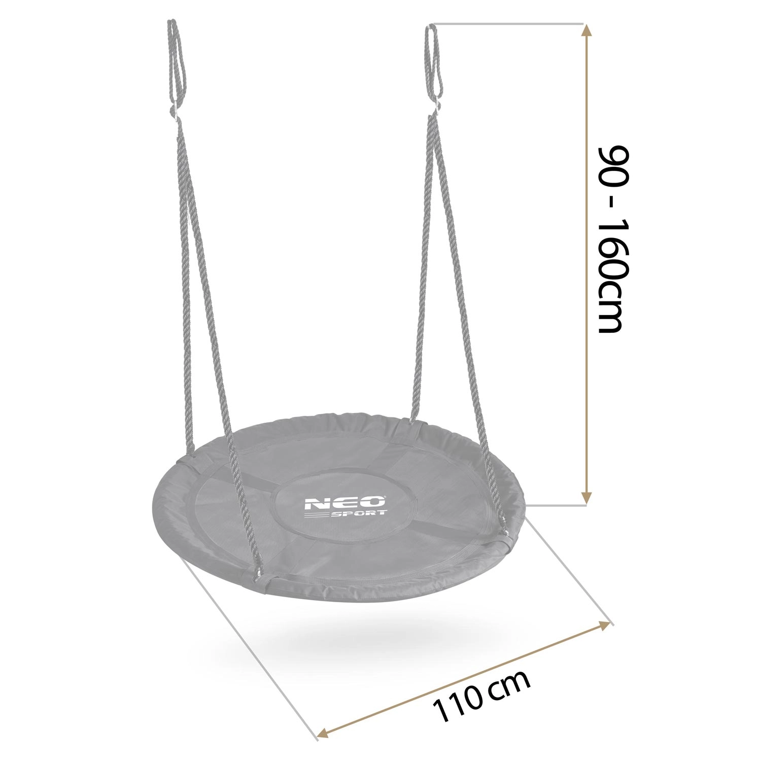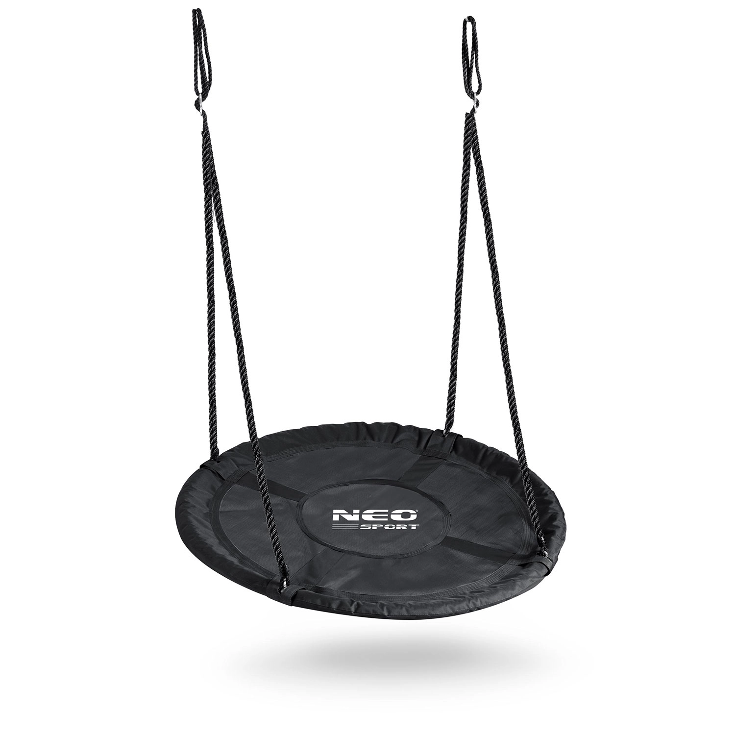 Uživajte u zajedničkoj zabavi u vrtu s okruglom ljuljačkom tipa roda gnijezdo promjera 110 cm marke NEO-SPORT. Nudi prostrano i udobno sjedište, vodootporan i lako periv materijal Oxford 600D te čvrstu čeličnu konstrukciju s pjenastim oblogama za veću sigurnost. Izdržljiva užad s glatkom regulacijom visine osiguravaju stabilnost i udobnost za djecu i odrasle do 150 kg.