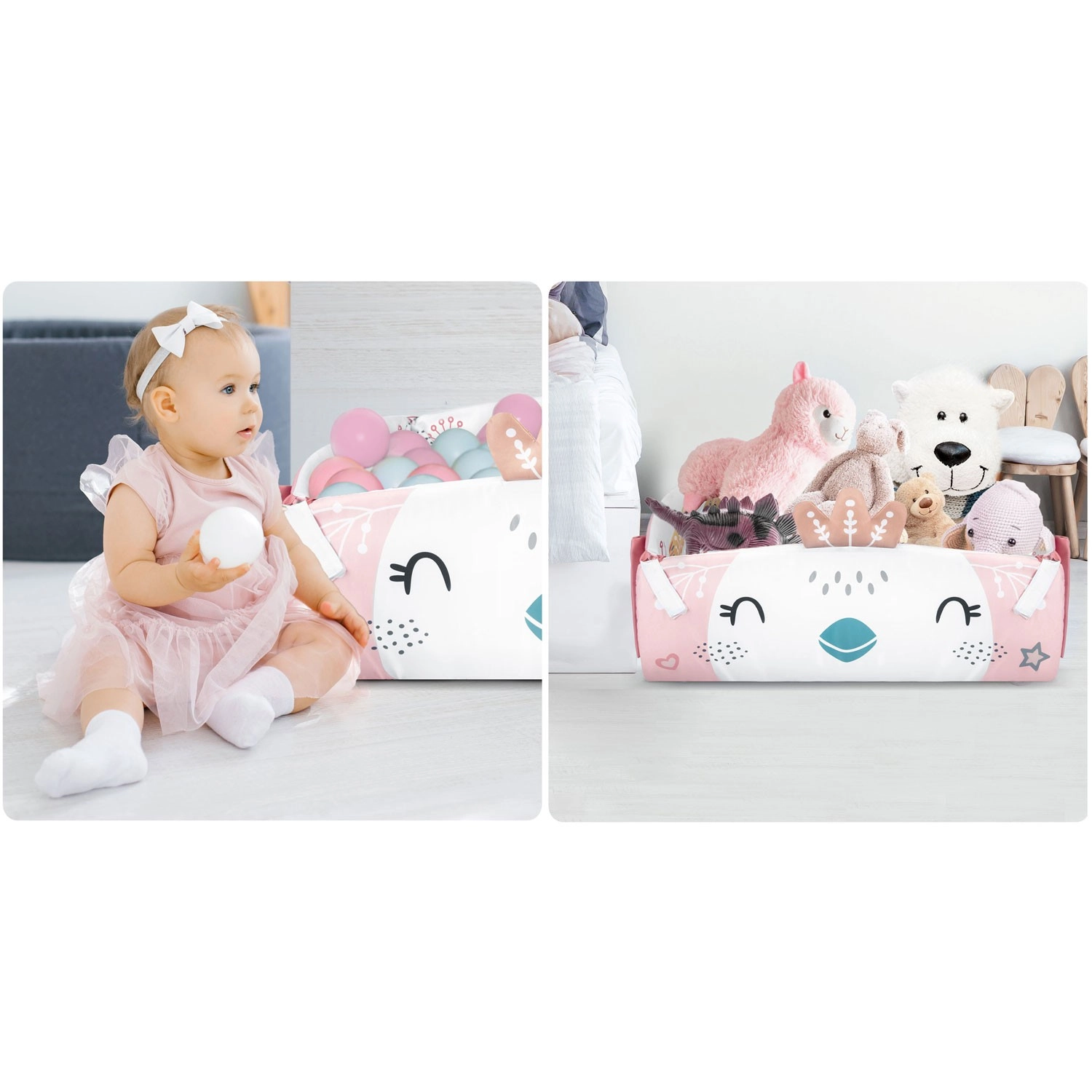 Podizne bočne stranice i odvojive prečke omogućuju brzu promjenu načina igre prema dobi i potrebama bebe. Idealno za ležanje, tummy time i prva sjedenja.
