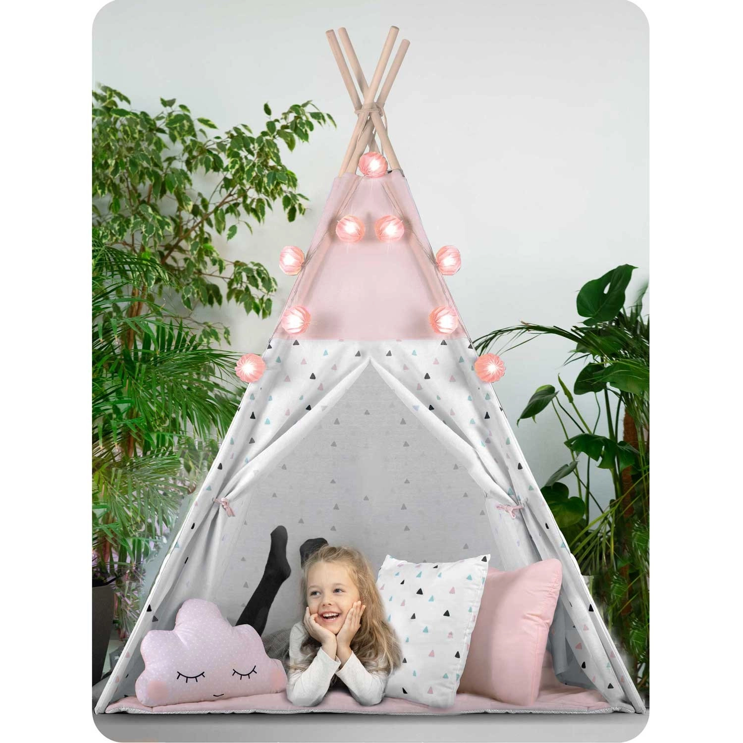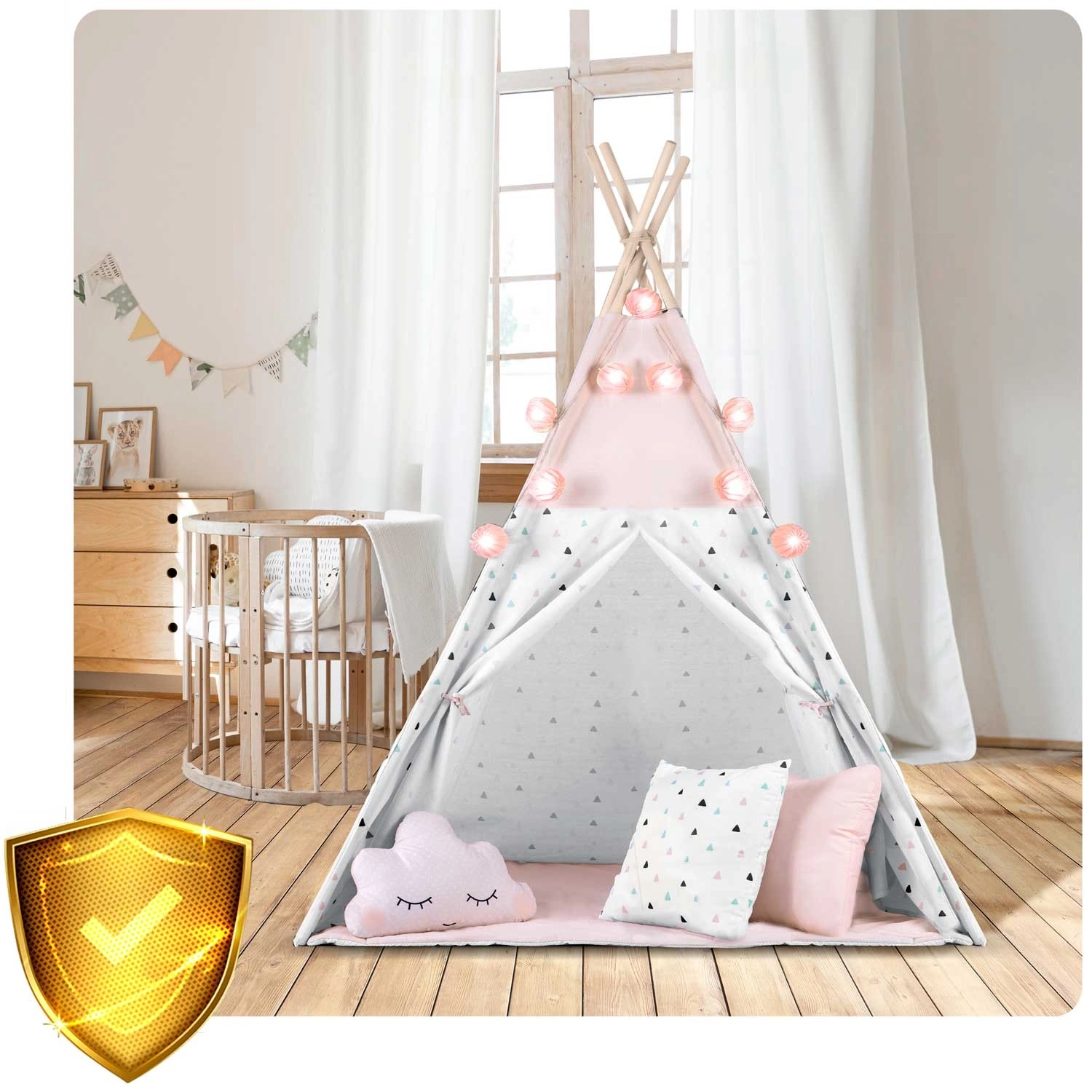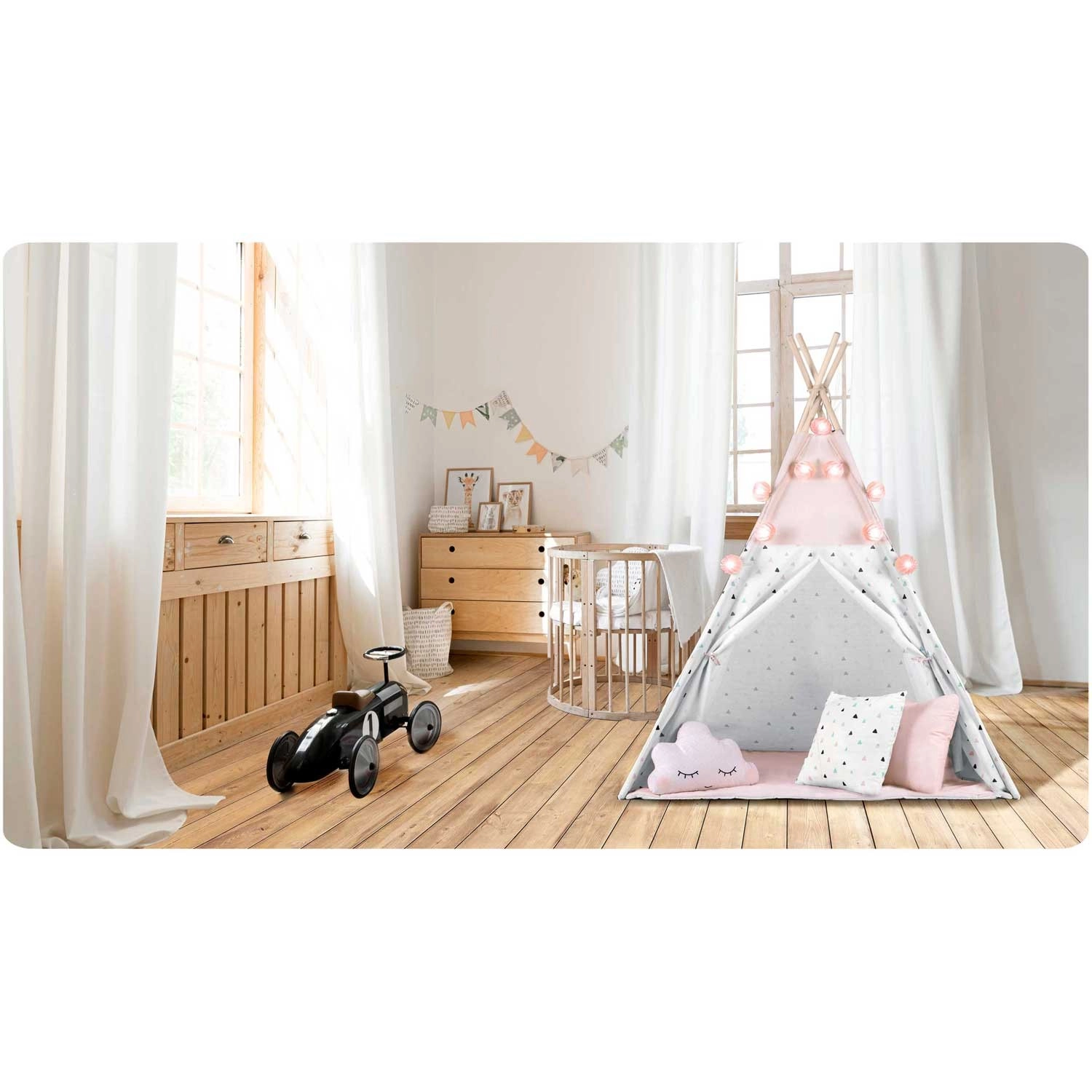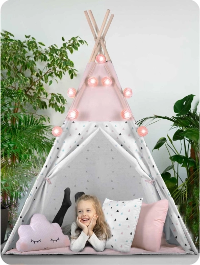 Dječji teepee NUKIDO u nježnim ružičastim tonovima hit je dječjih soba. Prozračni premium pamuk (175 g/m²) mekan je, izdržljiv i ugodan na dodir, dok drvene šipke od smreke osiguravaju čvrstoću i dug vijek trajanja. Zahvaljujući brzom sastavljanju i laganoj konstrukciji, teepee lako možete prenijeti iz sobe na terasu ili u vrt.