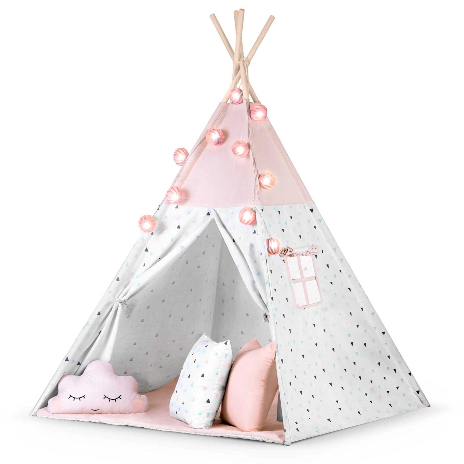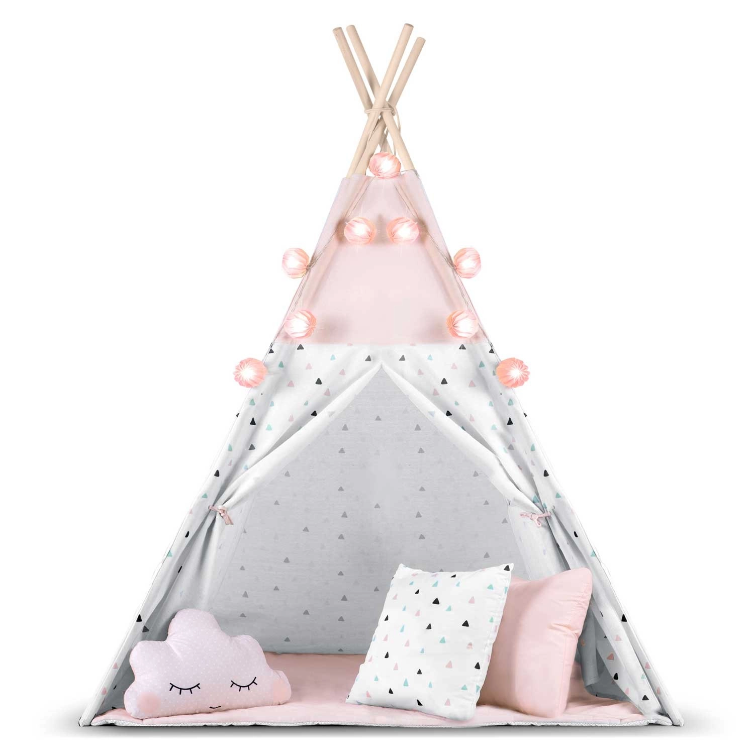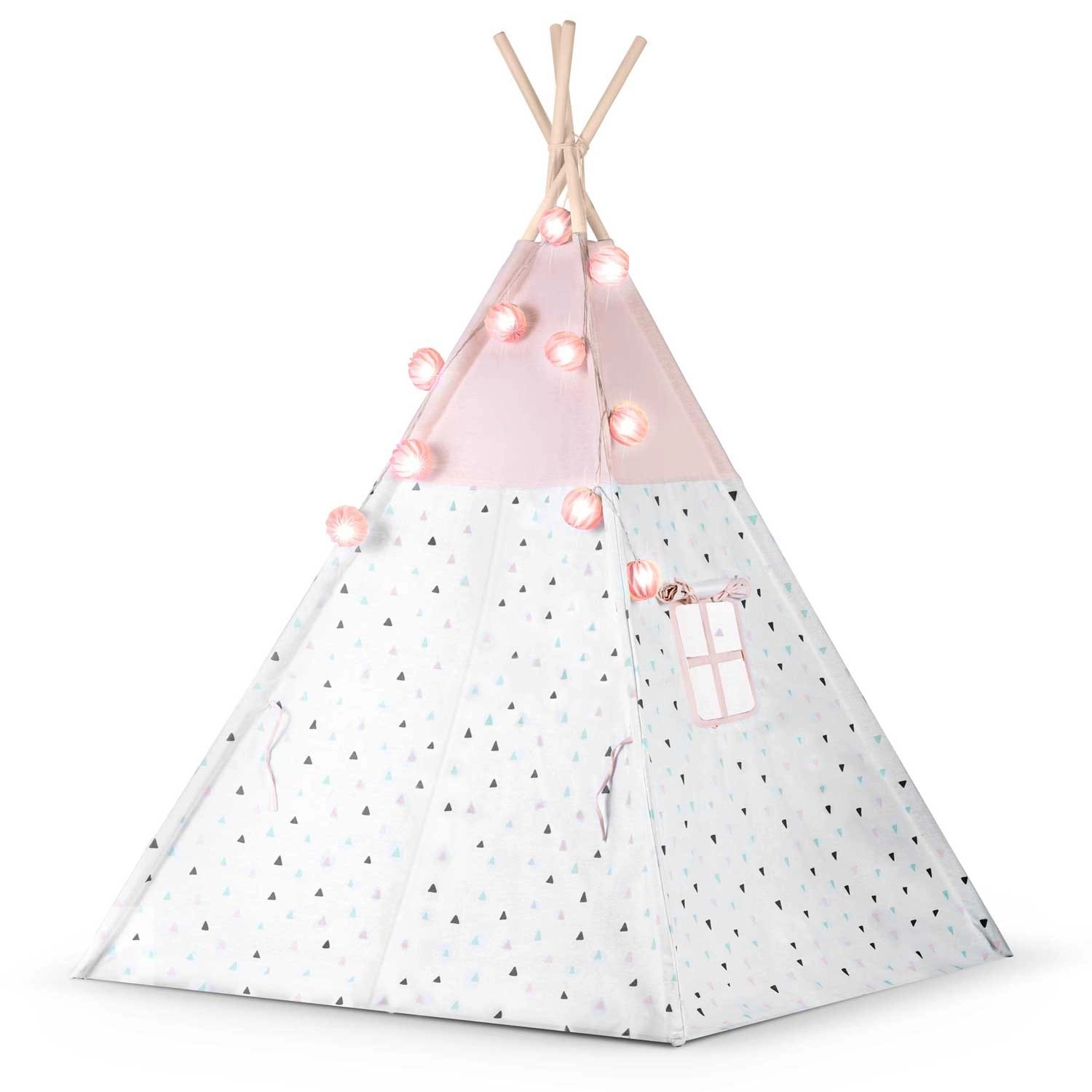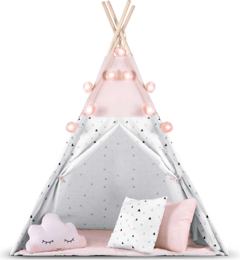 Dječji teepee NUKIDO u nježnim ružičastim tonovima hit je dječjih soba. Prozračni premium pamuk (175 g/m²) mekan je, izdržljiv i ugodan na dodir, dok drvene šipke od smreke osiguravaju čvrstoću i dug vijek trajanja. Zahvaljujući brzom sastavljanju i laganoj konstrukciji, teepee lako možete prenijeti iz sobe na terasu ili u vrt.