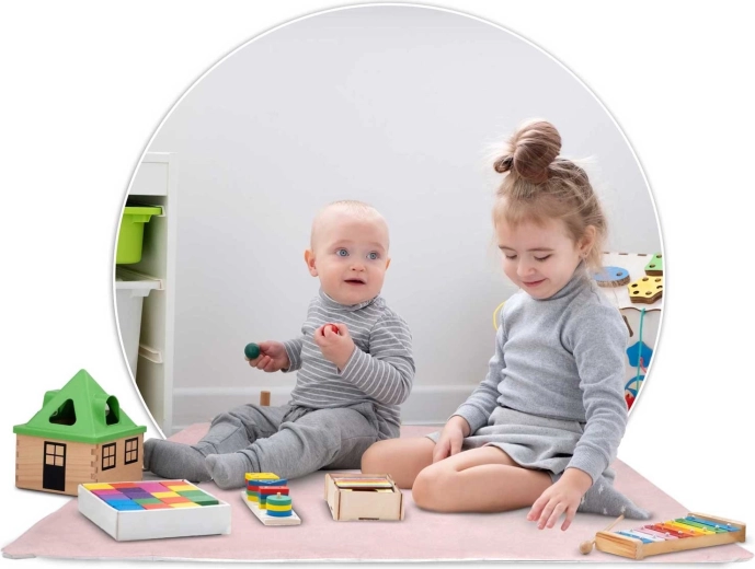 Dio pakiranja je izolacijska podloga s protukliznim ispupčenjima, koja štiti od hladnoće poda i povećava udobnost pri igri i čitanju. Tri mekana jastučića i dekorativne lampice s girlandom stvaraju ugodnu atmosferu. Otvorivi prozorčić s roletom i podizni ulaz potiču maštovitu igru i prirodno se uklapaju u principe Montessorija.