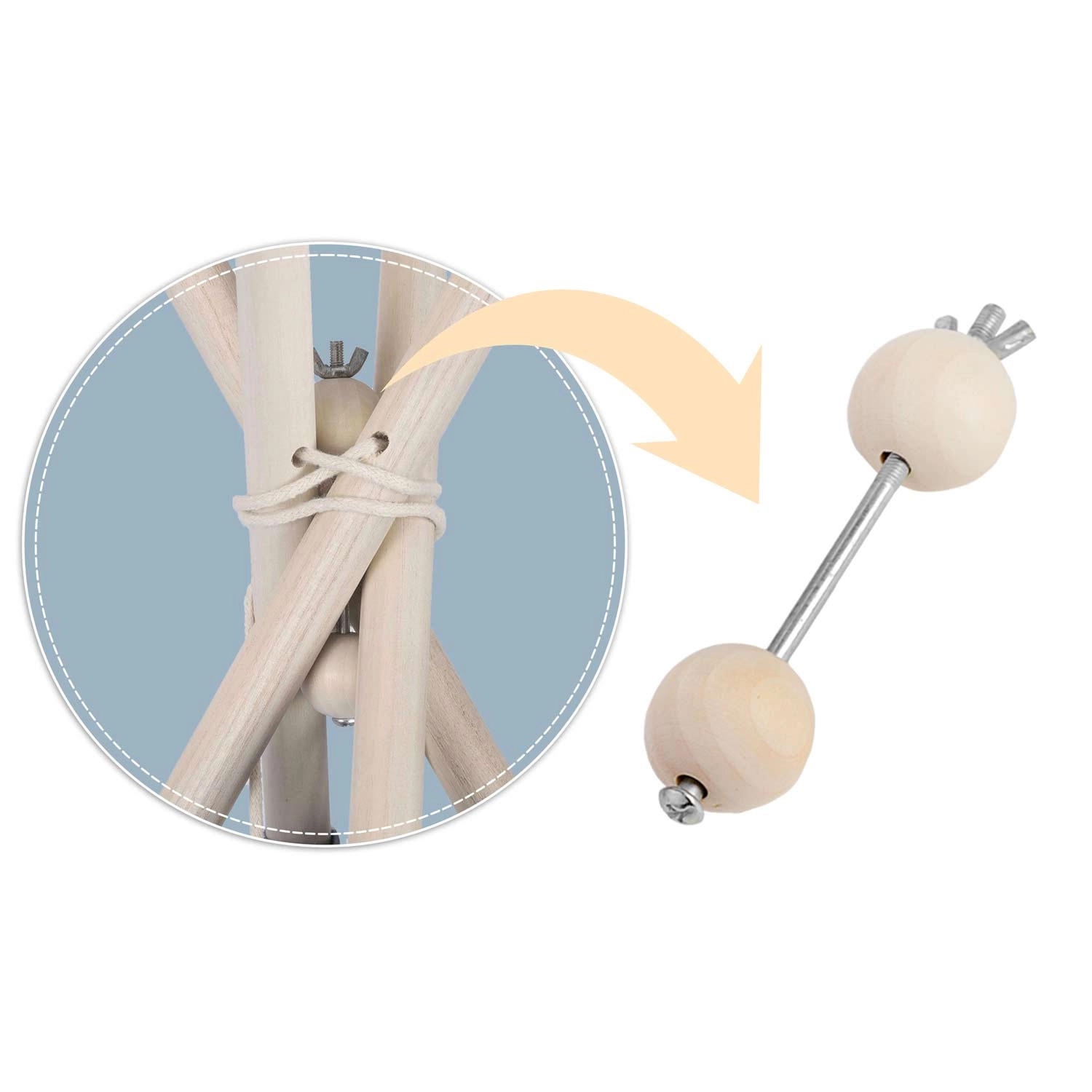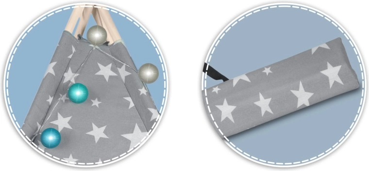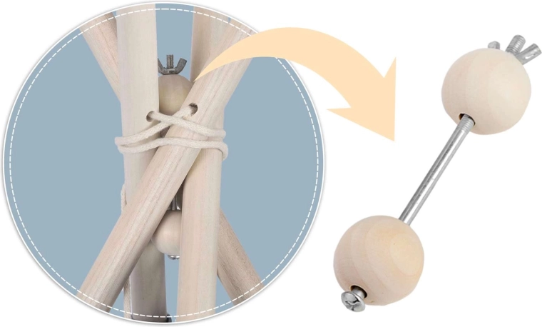 Četiri borove letve i priloženi stabilizator drže oblik teepeeja, povećavaju sigurnost i osiguravaju čvrstoću pri igri.