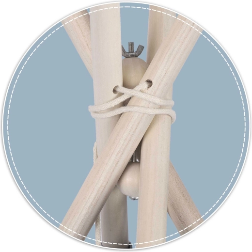 Učinite dječji teepee čvrstim i sigurnim utočištem u trenu. Ovaj drveni stabilizator Nukido učvrstit će konstrukciju kako bi šator bio stabilan, siguran i lijepo zategnut. Zahvaljujući jednostavnom zatezanju krilnom maticom postavit ćete tipi brže, a tkanina će se ravnomjerno zategnuti bez opuštanja.