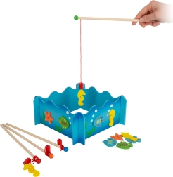 Stabilna igraća ploha, glatko obrađeni drveni dijelovi i intenzivne boje jamče dugotrajnost i sigurnu zabavu. Zahvaljujući 4 štapovima igra je izvrsna za grupnu igru, razvoj komunikacije i jednostavno prebrojavanje ulova.