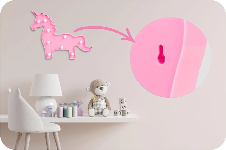 Lagana plastična konstrukcija je sigurna i hladna na dodir, LED diode se ne zagrijavaju i štede energiju. Praktični otvor za vješanje omogućuje brzu montažu na zid bez složene instalacije. Minimalističko ružičasto izdanje izvrsno se uklapa u moderne interijere i razveselit će predškolce i tinejdžere.