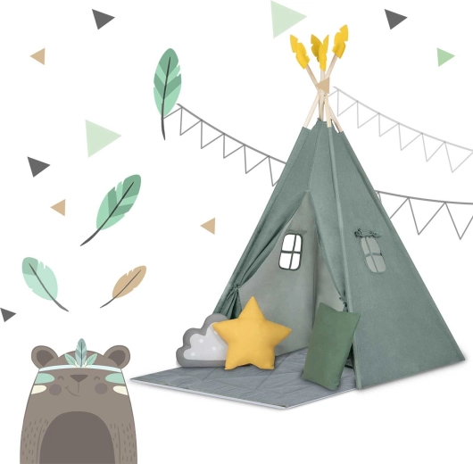 Stvorite djetetu njegov vlastiti kutak – stylish dječji teepee Nukido u zelenoj boji. Šator od kvalitetnih prirodnih materijala nudi mekanu i izdržljivu tkaninu, stabilnu konstrukciju sa stabilizatorom, lako sastavljanje i bogatu opremu. U pakiranju se nalaze 3 jastuka, debela izolacijska podloga s protuklizom, prozorčići s roletama i ukrasi. Idealno za igru, čitanje i opuštanje u duhu Montessori metode.