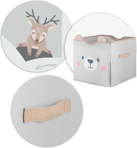Funkcionalni detalji oduševit će i roditelje i djecu: čvrste čičak trake zadržavaju oblik košare, bočne ručke olakšavaju prenošenje, a jednostavno održavanje osigurava brzo čišćenje. Zahvaljujući kompatibilnim dimenzijama odlično pristaje u uobičajene police i regale.