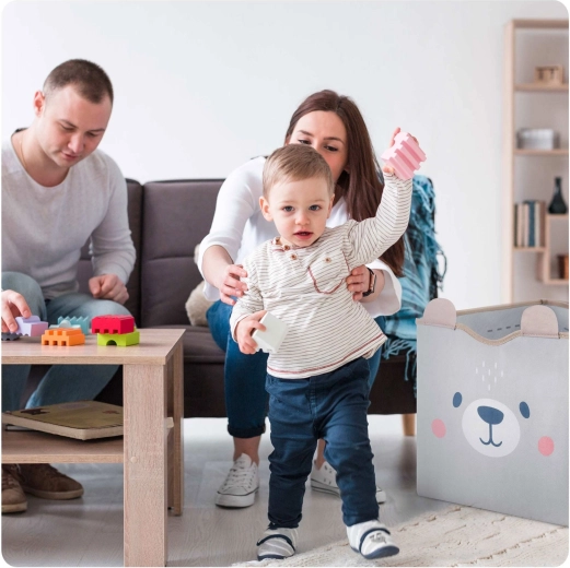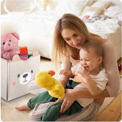 Otkrijte pametno rješenje pospremanja i igre u jednom. Košara za igračke i podloga za igru 2-u-1 osmišljena je kako bi štedjela prostor, vrijeme i živce. Kao košara nudi iznimno velik volumen i stabilnost, a nakon rasklapanja pretvara se u mekanu podlogu s cestama za autiće i figurice. Minimalistički sivi dizajn s medvjedićem lijepo se uklapa u moderan interijer i djeluje kao dekorativni element.