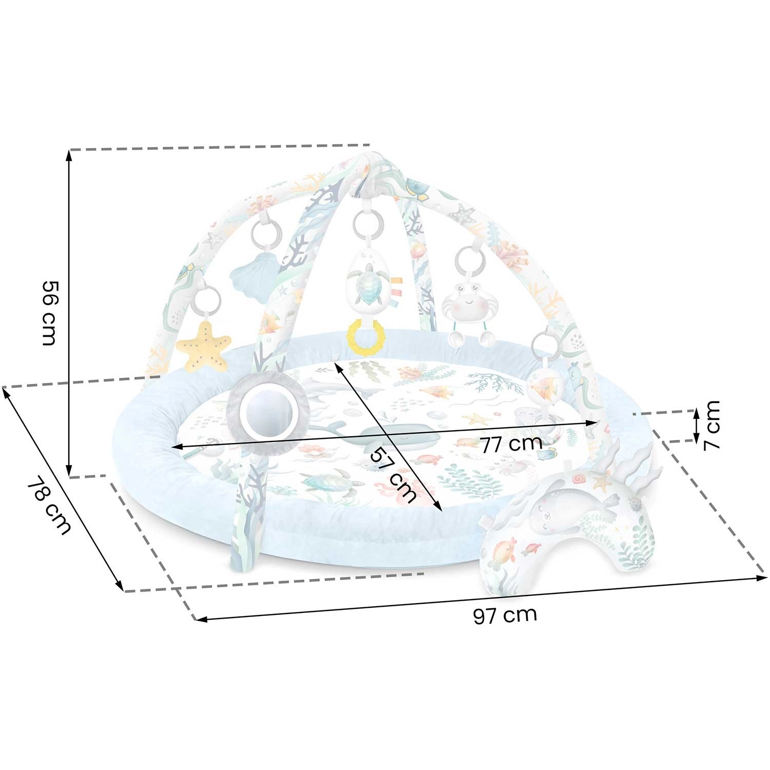 Podloga za igru s povišenim rubom, 2 odvojiva luka, 7 multifunkcionalnih igračaka, jastučić