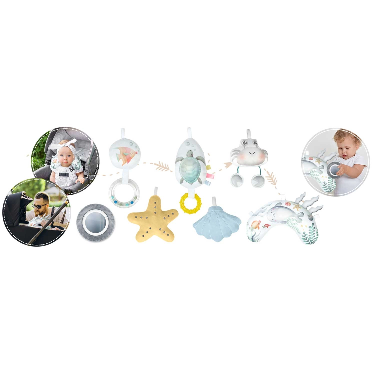 Zrcalce, zvečkice, šuškavi elementi, piskava igračka (rak), mekane viseće figurice