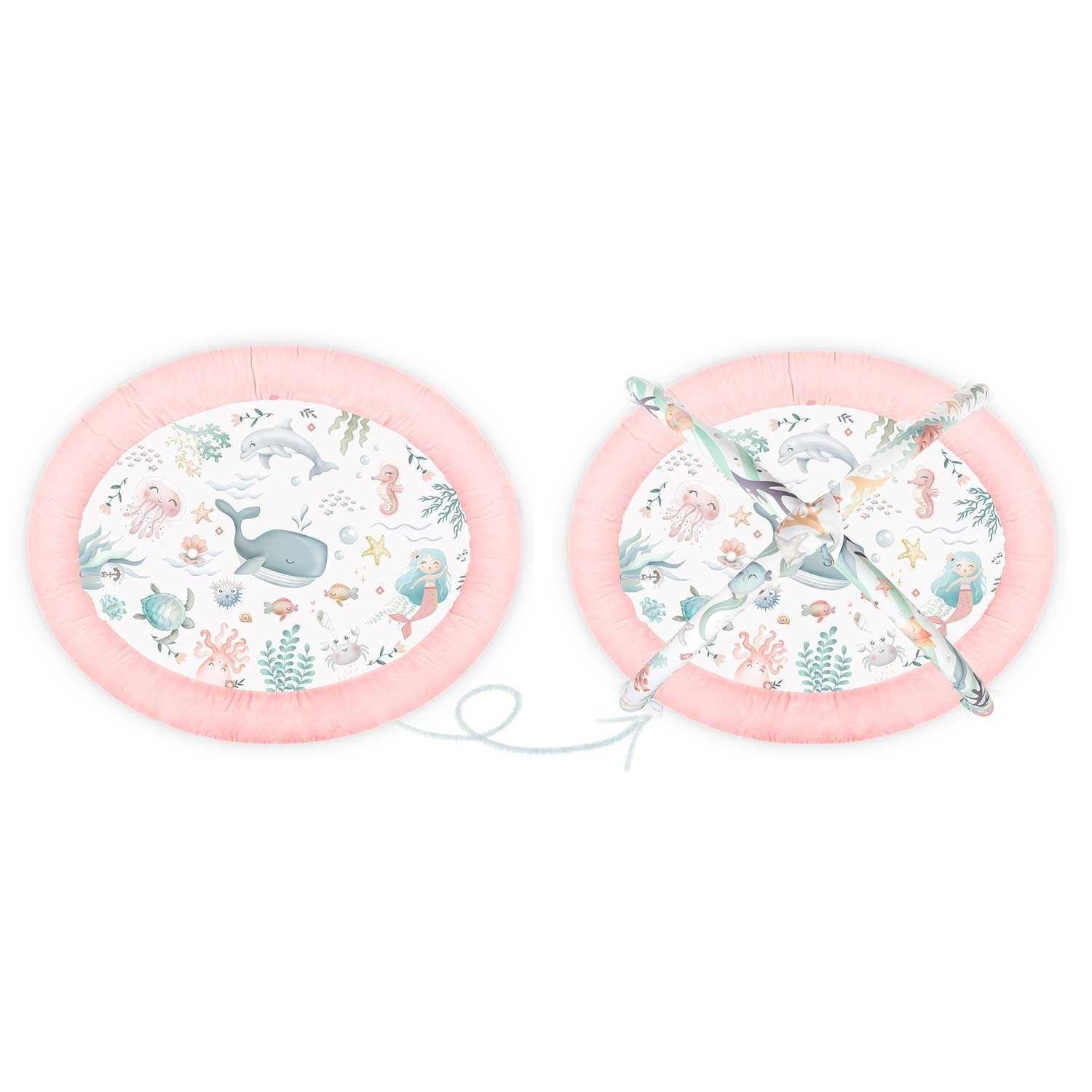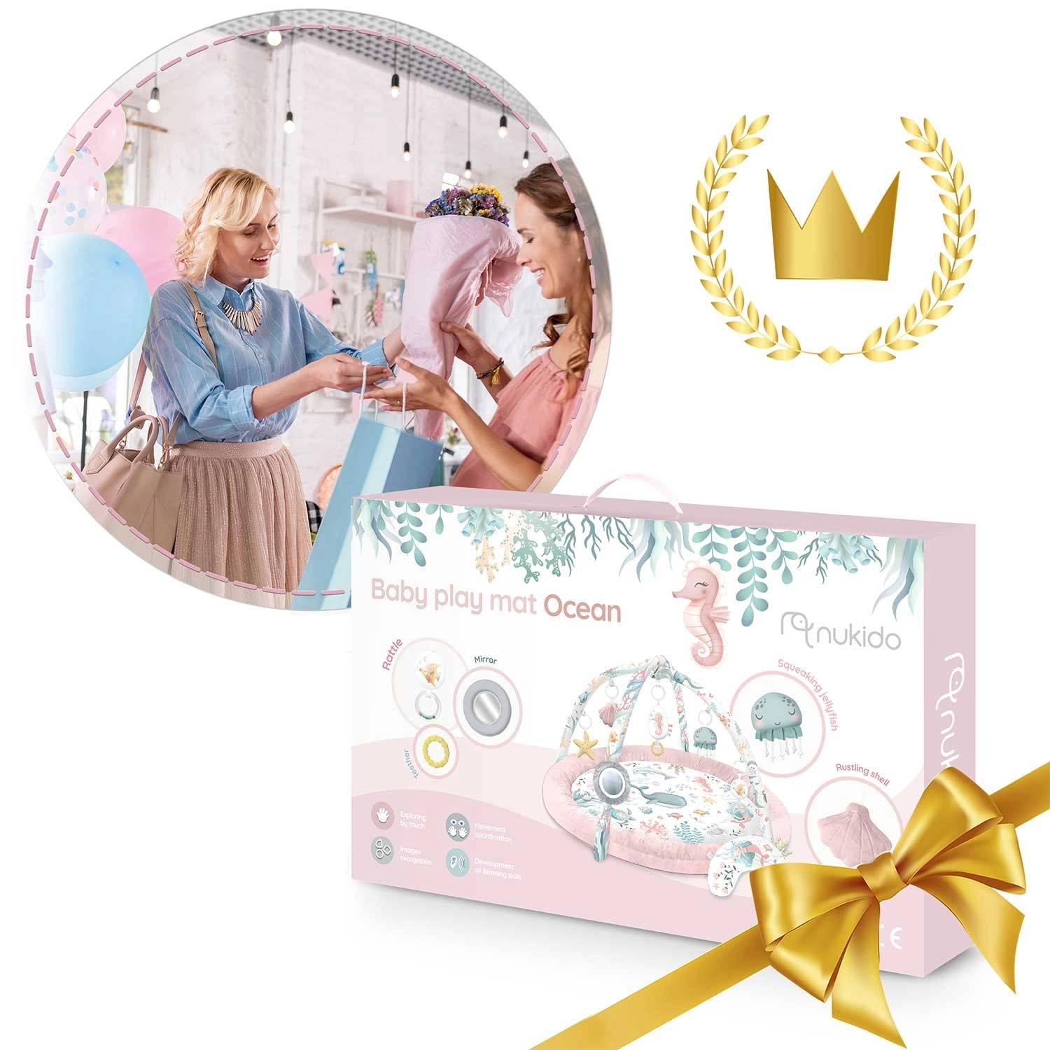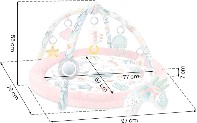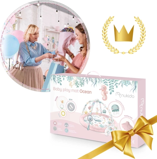 Igraća podloga Nukido Ocean – ružičasta stvara ugodan i siguran prostor za svakodnevnu igru i odmor. Odvojivi lukovi s šarolikim morskim motivima i visećim igračkama prirodno podupiru razvoj vida, dodira i motorike. Zahvaljujući mekoj, izdržljivoj i lako čistivoj površini podloga je spremna za svakodnevne avanture.