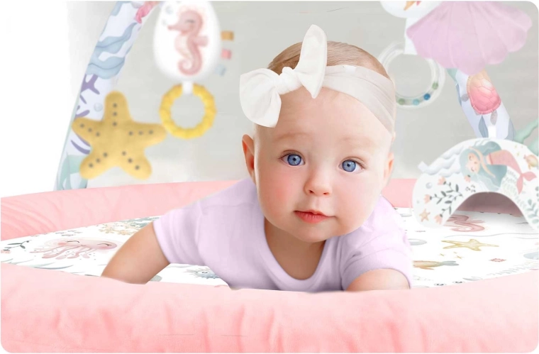 Mekani jastučić olakšava ležanje na trbuščiću i pomaže jačanju vratnih i leđnih mišića. Na jastučić se mogu pričvrstiti igračke za još veću motivaciju.