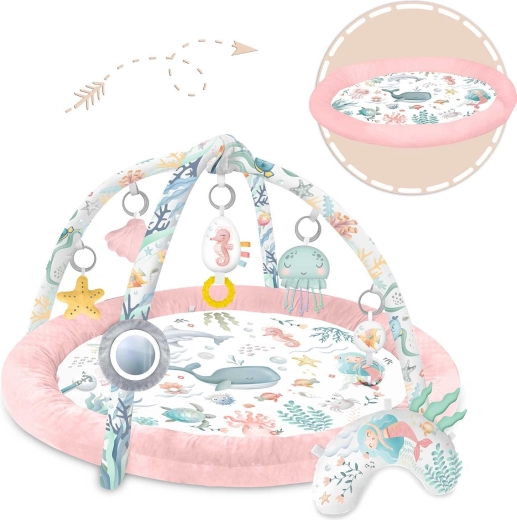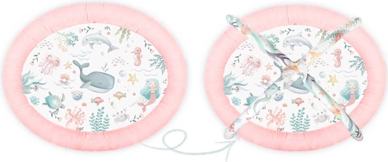 Otkrijte mekano i sigurno igraće gnijezdo za bebe Nukido Ocean u ružičastoj boji, koje spaja razvoj osjetila, potporu koordinaciji i udobnost tijekom tummy timea. Dva odvojiva luka sa 7 multifunkcionalnih igračaka (ogledalce, pištalica, zvečkice i šuškavi elementi) potiču hvatanje i istraživanje. Lako sklapanje, mekan i periv materijal te podupirući jastučić čine ovu podlogu idealnim centrom aktivnosti od prvih mjeseci.