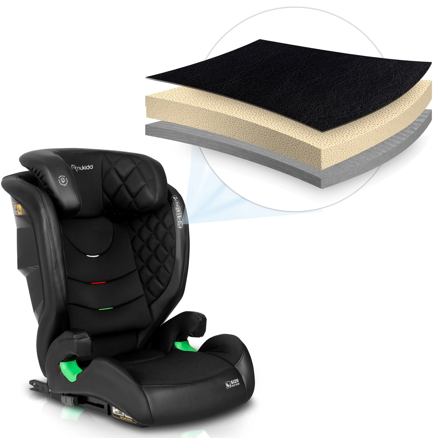 Autosjedalica Nukido Louis nudi kombinaciju vrhunske sigurnosti, udobnosti i jednostavne ISOFIX ugradnje za djecu visine 100–150 cm (otprilike 4–12 godina). Ima SIP bočnu zaštitu, 12 razina podešavanja naslona za glavu, 2 položaja nagiba i lako uklonjivu navlaku pogodnu za pranje. Ispunjava strogi standard ECE R129 / i-Size te se može koristiti i kao samostalno booster sjedište za stariju djecu.