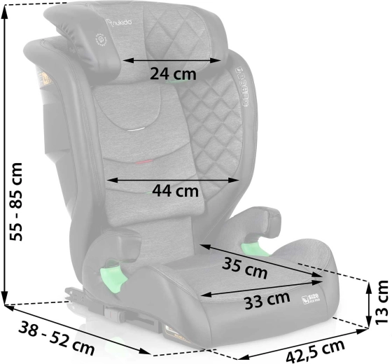 Autosjedalica Nukido Louis dizajnirana je za djecu približno od 4 do 12 godina (100–150 cm) i kombinira visoku sigurnost, udobnost i praktičnost. Čvrsta instalacija putem ISOFIX sustava drži sjedalice stabilnima, dok SIP – Side Impact Protection pojačava zaštitu glave, vrata i kralježnice pri bočnom udaru. Premium presvlake s mekim prošivima i 2 položaja nagiba ugodnije čine i duža putovanja.