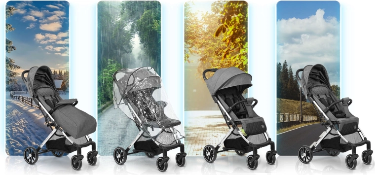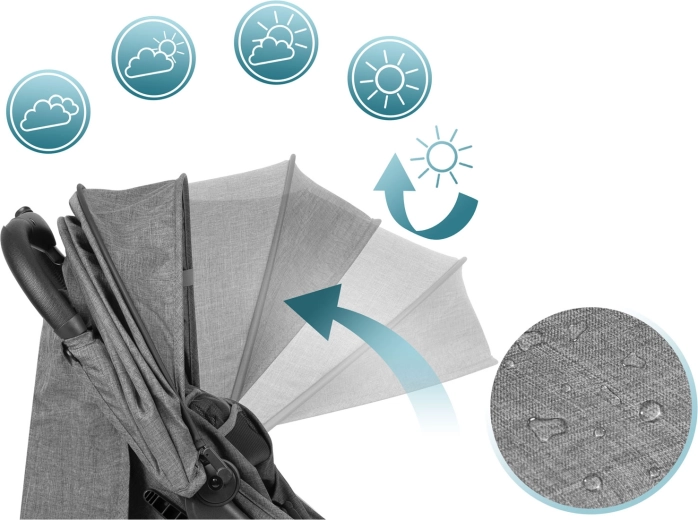 Višepoložajna krošnja štiti od sunca i vjetra, a vodoodbojna tkanina odolijeva rosulji. Proširite je prema potrebi kada dijete spava ili je podignite za bolji pogled.