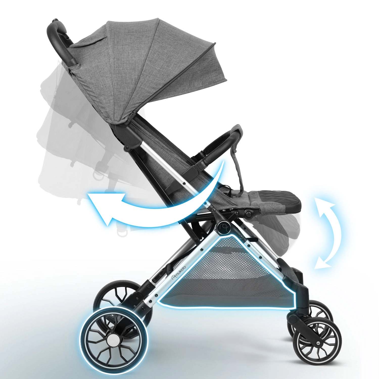 Kolica Nukido Paseo pouzdan su suputnik od rođenja do 36 mjeseci. Zahvaljujući aluminijskom okviru čvrsta su, a ipak lagana (samo 7,3 kg) te se lako upravljaju u uskim ulicama i na neravninama. Sklapanje jednom rukom u kompaktne dimenzije čini ih idealnim izborom za putovanja automobilom i avionom. Praktičan prostran koš ispod sjedala prima sve potrepštine za put.