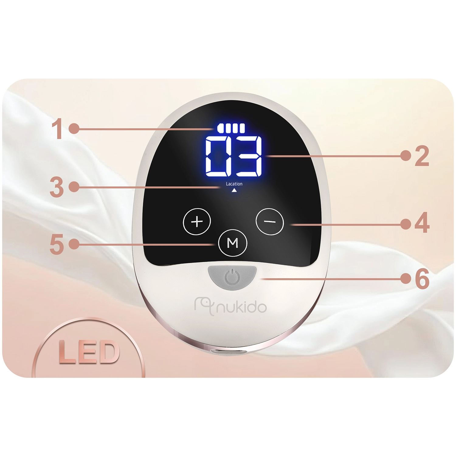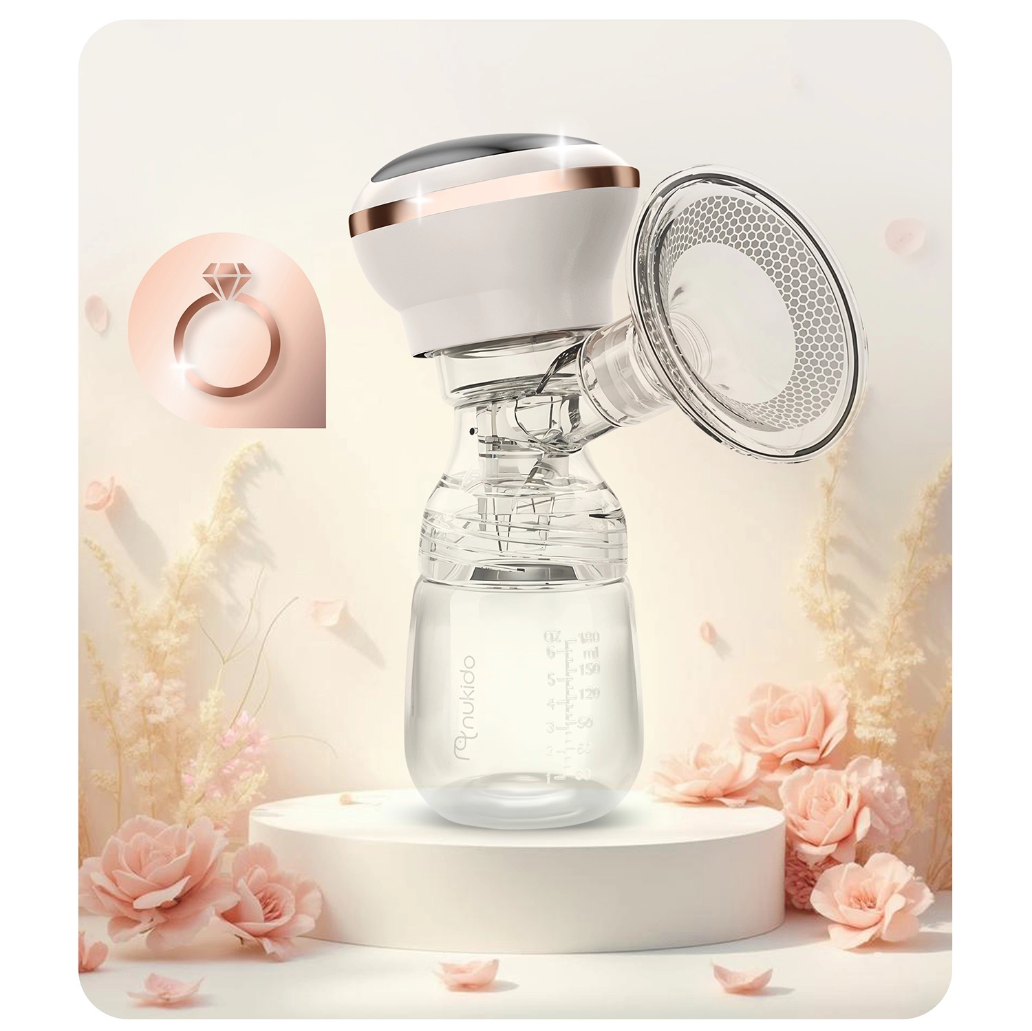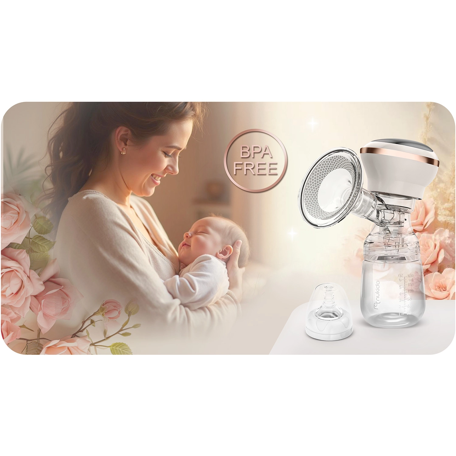 Kompaktna i tiha električna izdajalica majčinog mlijeka Nukido nudi 3 faze izvlačenja, do 9 razina stimulacije, LED zaslon s dodirom i bežično korištenje zahvaljujući integriranoj litij bateriji. U kompletu je bočica 180 ml s dinamičnom dudom, mekani silikonski masažni umetak za udobnost i USB‑C punjenje. Materijali su bez BPA, a dijelove (osim električnog panela) moguće je prati u perilici posuđa.