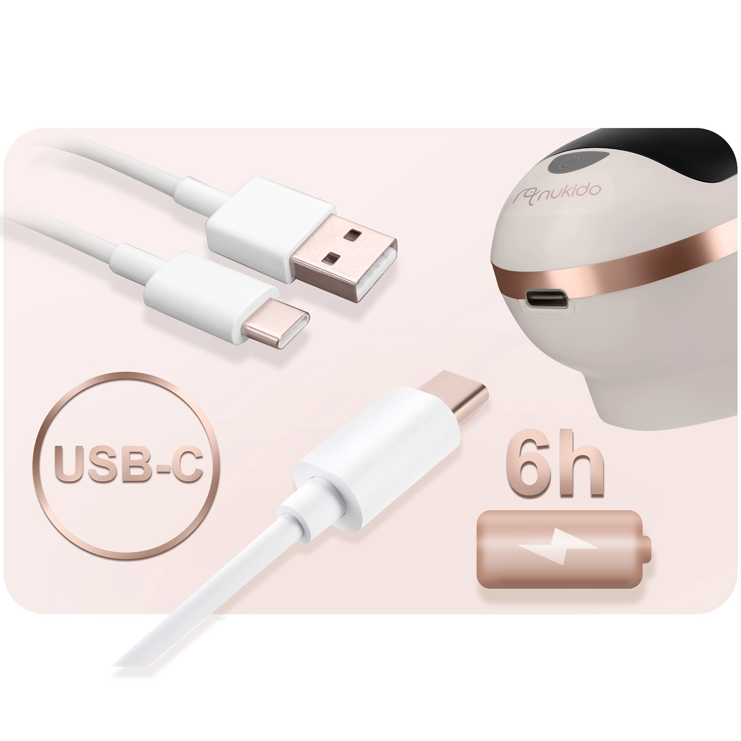Integrirana Li‑ion baterija omogućuje do 6 sati korištenja. Tih rad omogućuje diskretno izdajanje kod kuće, na poslu i na putu.