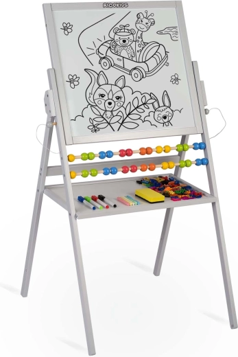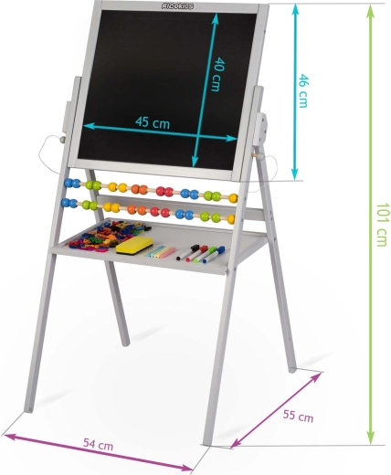 Obostrana ploča RICOKIDS idealno je pomagalo za kreativno učenje kod kuće i u vrtiću. Jedna strana je magnetna za rad s magnetima i markerima, druga je kredna za klasično crtanje. Sastavni dio je i abakus, koji na razigran način podržava prve korake u matematici.