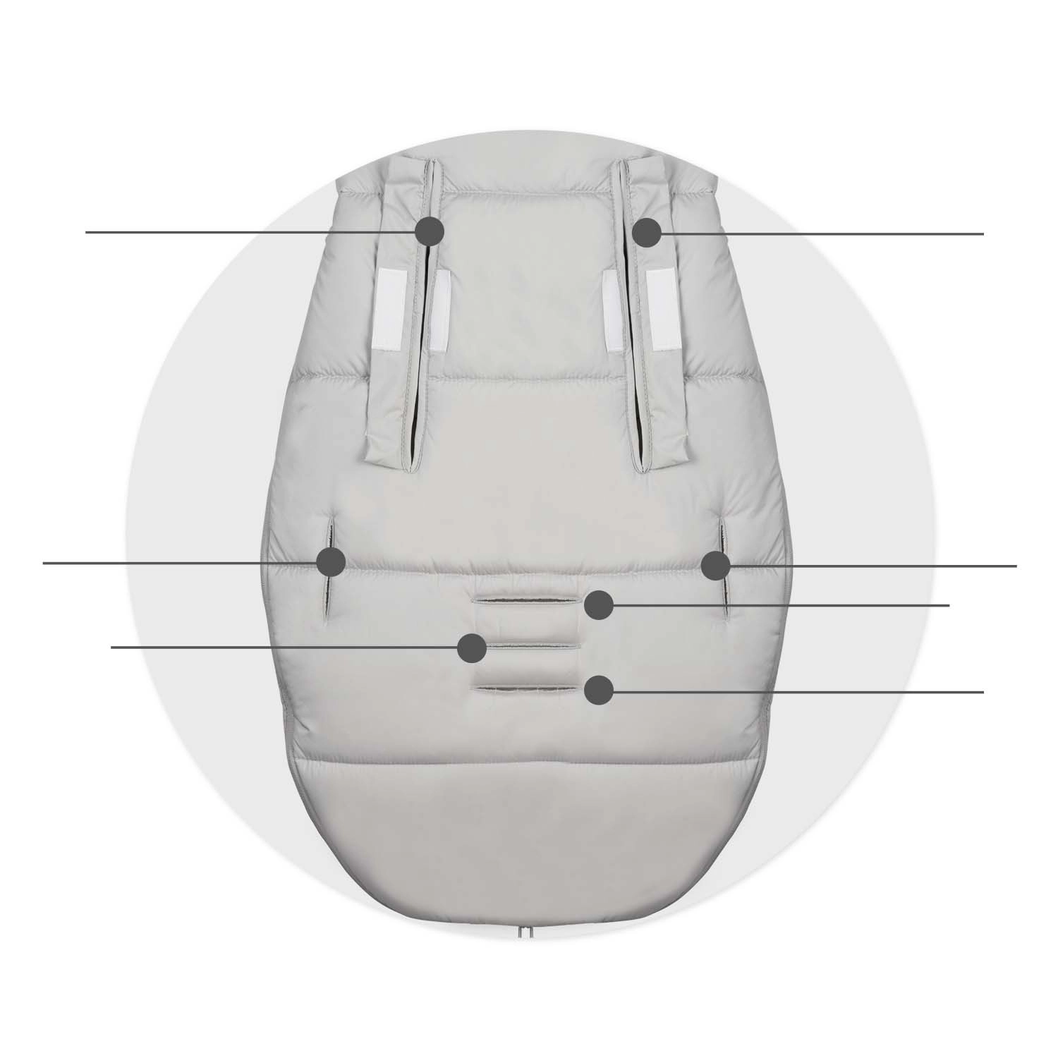 Otvaranje odozgo i odozdo za prozračivanje i lak pristup. Uložak se može raskopčati i koristiti kao podloga/umetak za kolica – maksimalna fleksibilnost tijekom cijele sezone.