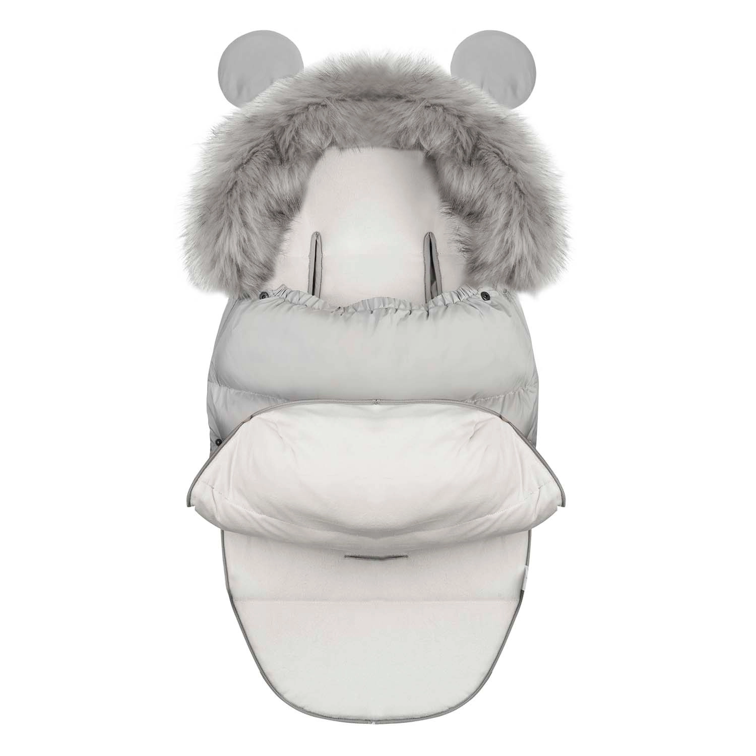 Praktični dvosmjerni patentni zatvarači omogućuju brzo prozračivanje odozdo i lako otvaranje odozgo, tako da uložak jednostavno prilagodite aktualnom vremenu. Odvojiva krznena obloga može se skinuti prije pranja. Uložak se dodatno može potpuno otvoriti i koristiti kao umetak za kolica.