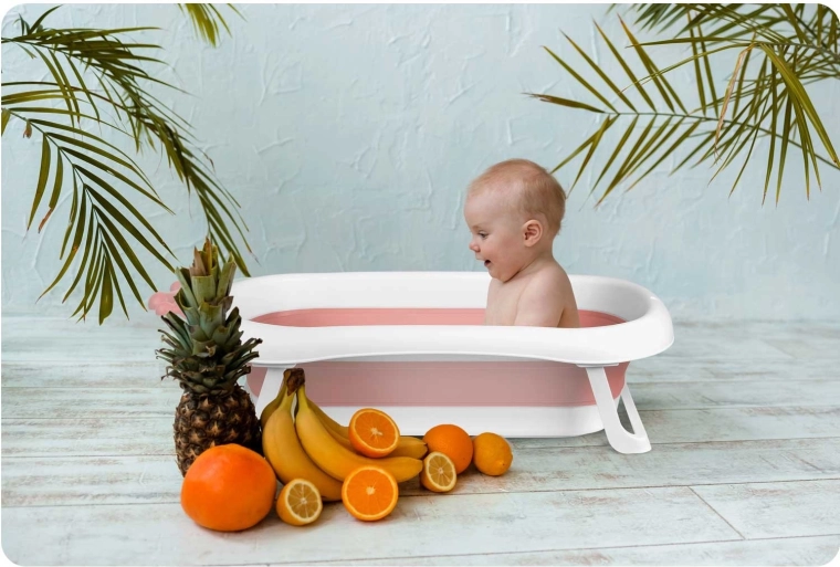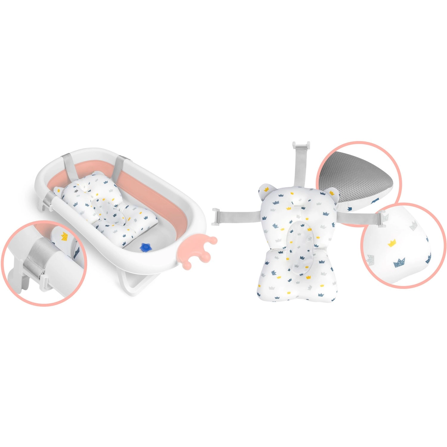 Praktična putna kadica za bebe i malu djecu koja spaja sklopivu konstrukciju, lakoću i maksimalnu sigurnost. Ima protuklizne nožice i sjedeći dio, čep s pokazivačem temperature koji mijenja boju iznad 38 °C te mekani uklonjivi jastučnik učvršćen trakama. Idealna za svakodnevnu njegu i putovanja, s odvodnim čepom za lako ispuštanje vode.